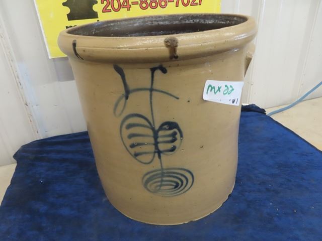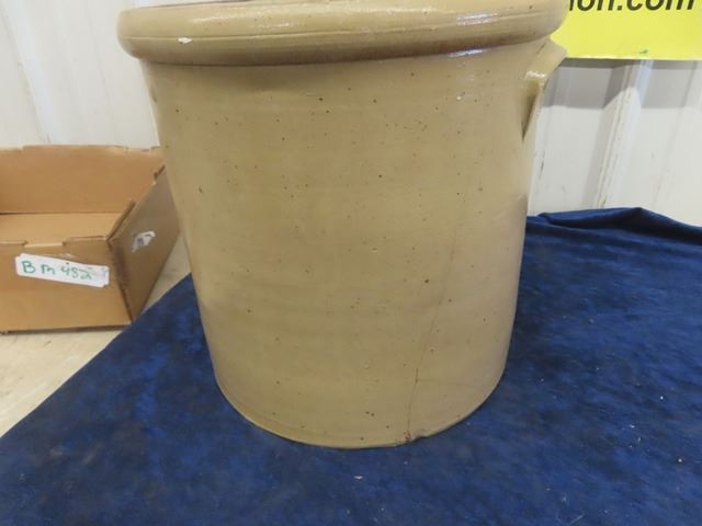4 Gal Salt Glazed Crock - Some Cracks on Lower Back Side