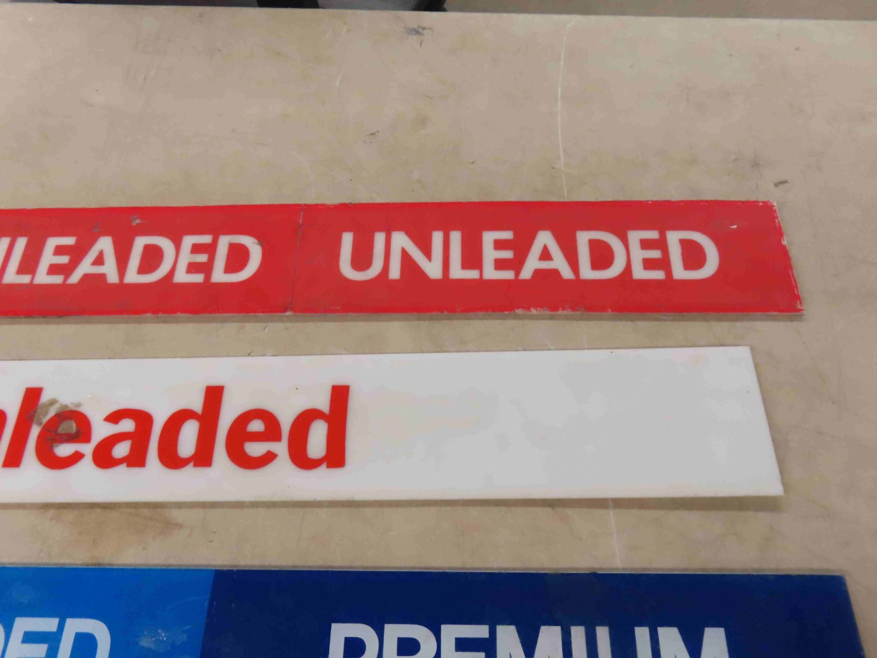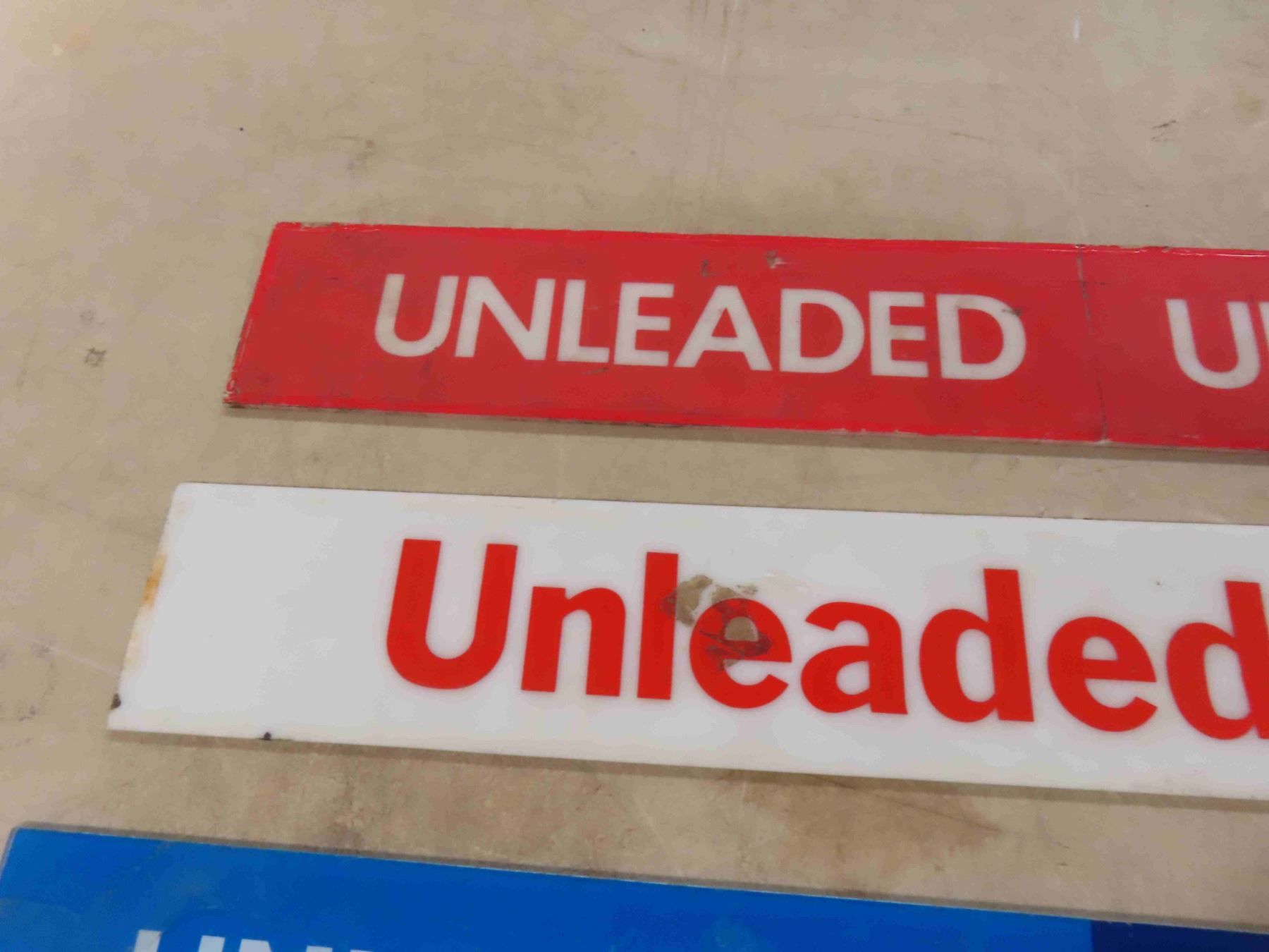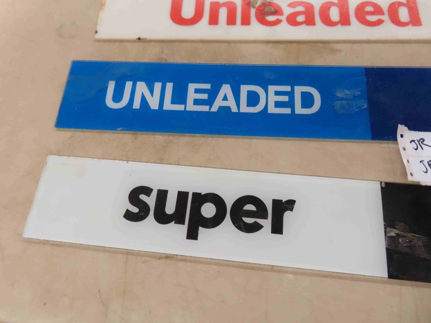4 Gas Pump Signs : 3 Fiberglass , 'Super No Lead' is Glass 3 1/2'' x 26''