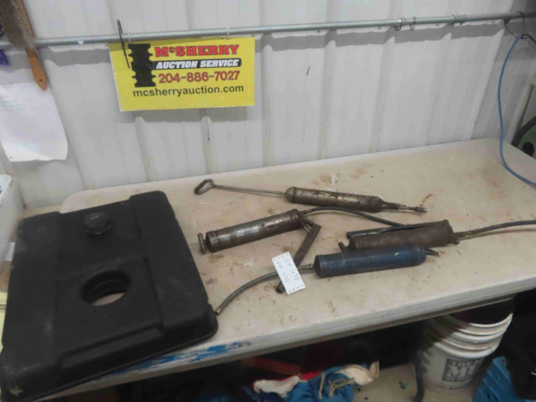 4 Grease Guns, 5 Gal Poly Fuel Tank