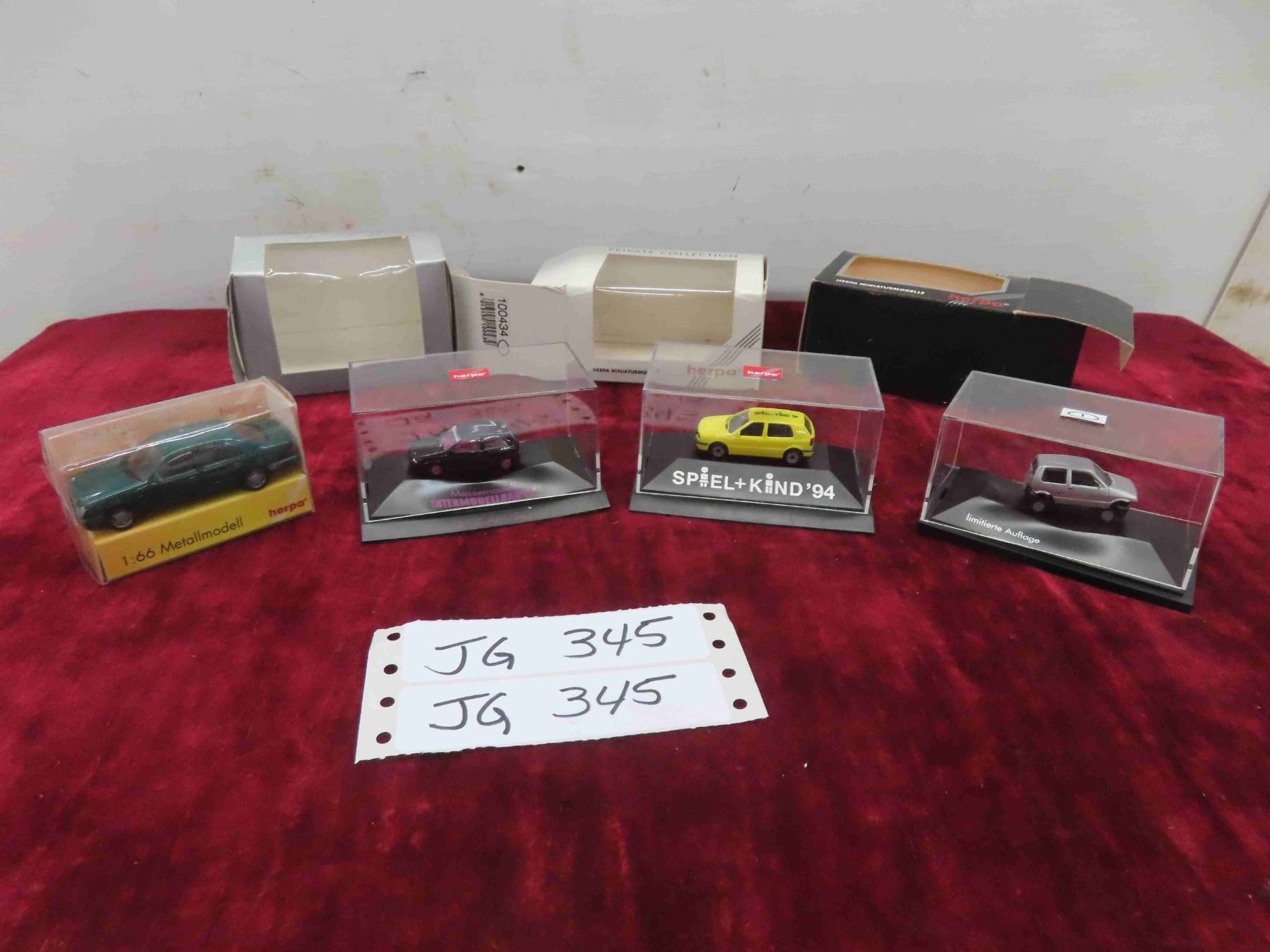 4 Herpa Miniature Model Cars Used with Model Train Sets, Made in Germany