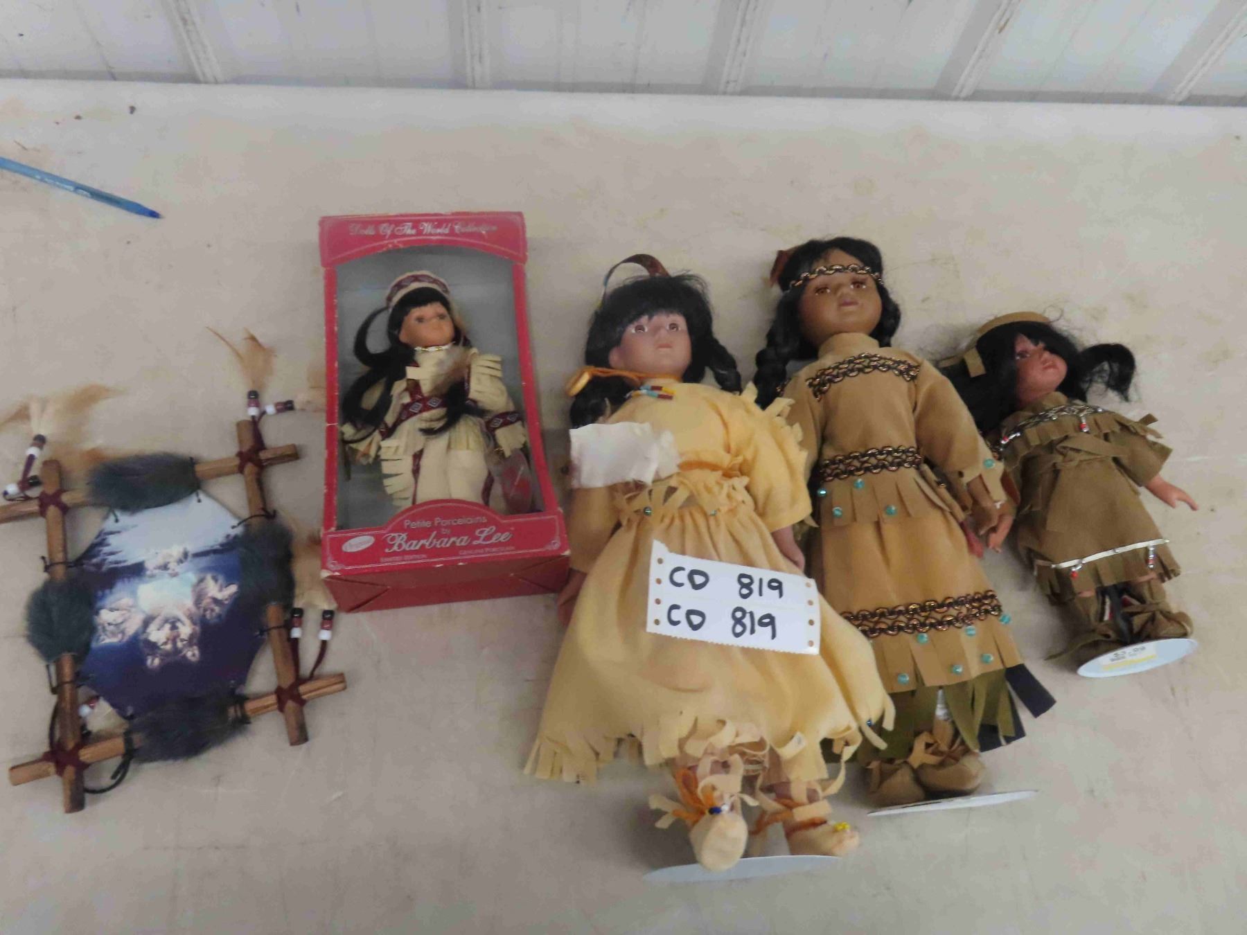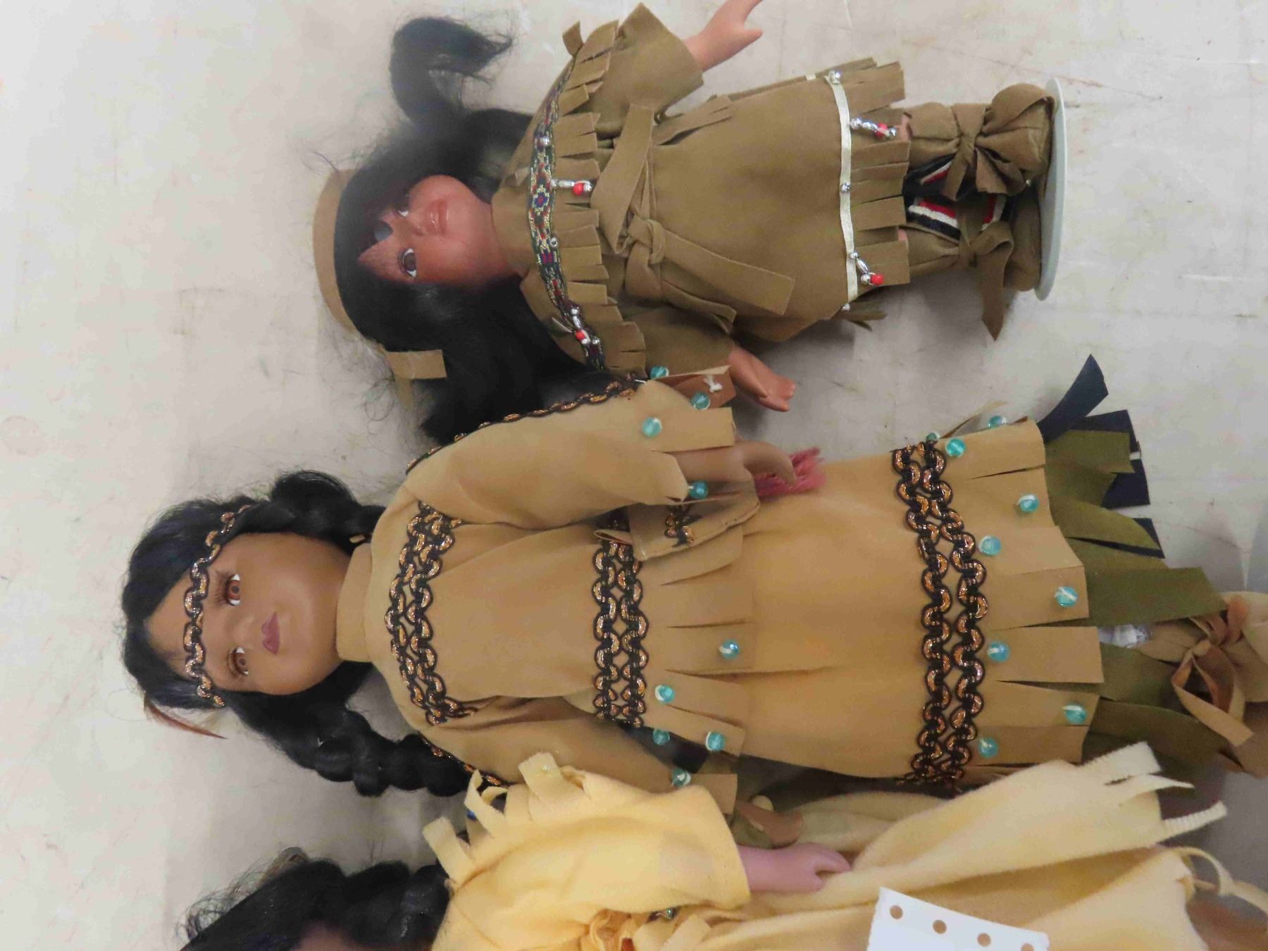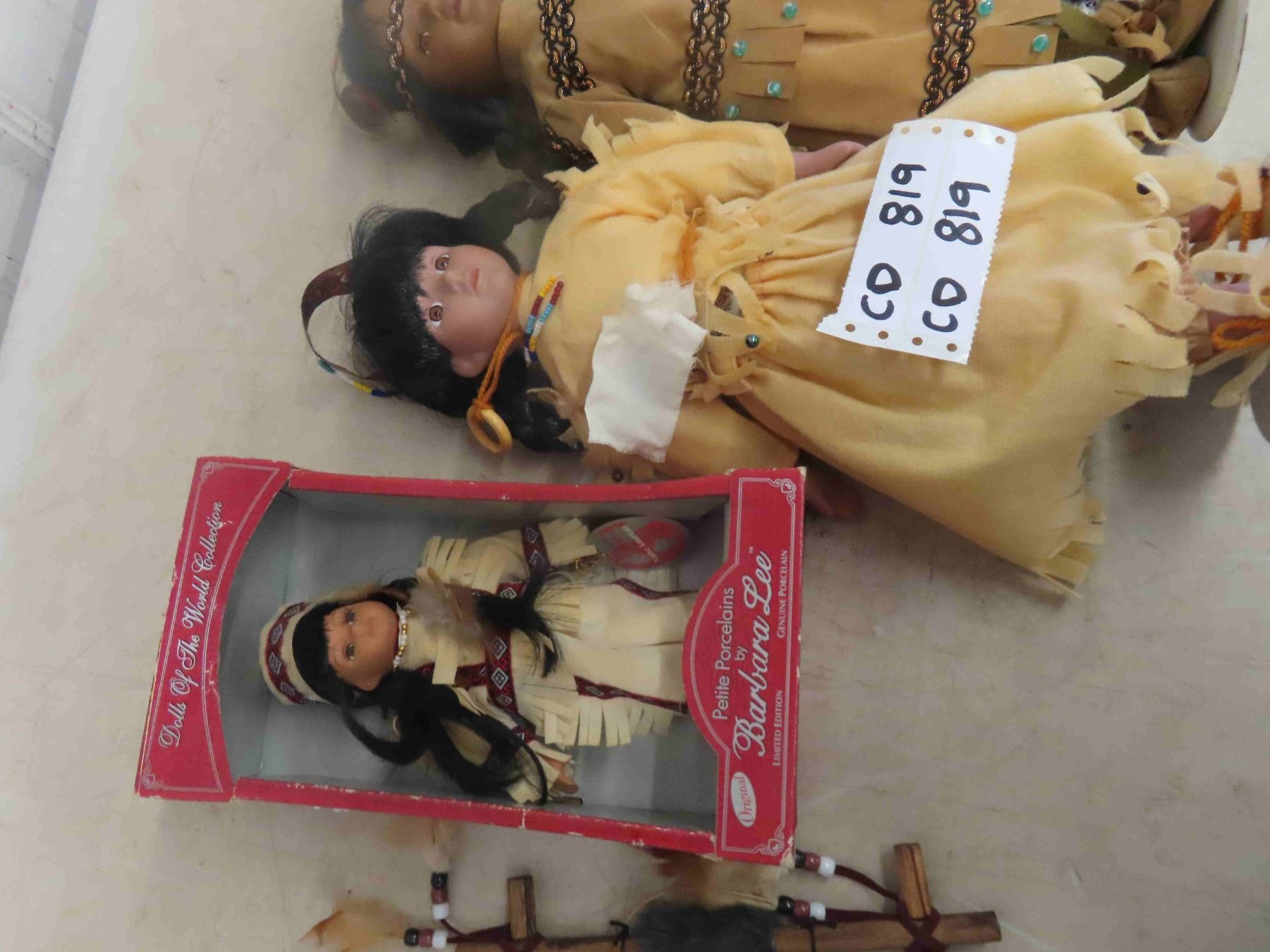 4 Indigenous Styled Porcelain Dolls- 1 with Box 9" to 16" Tall
