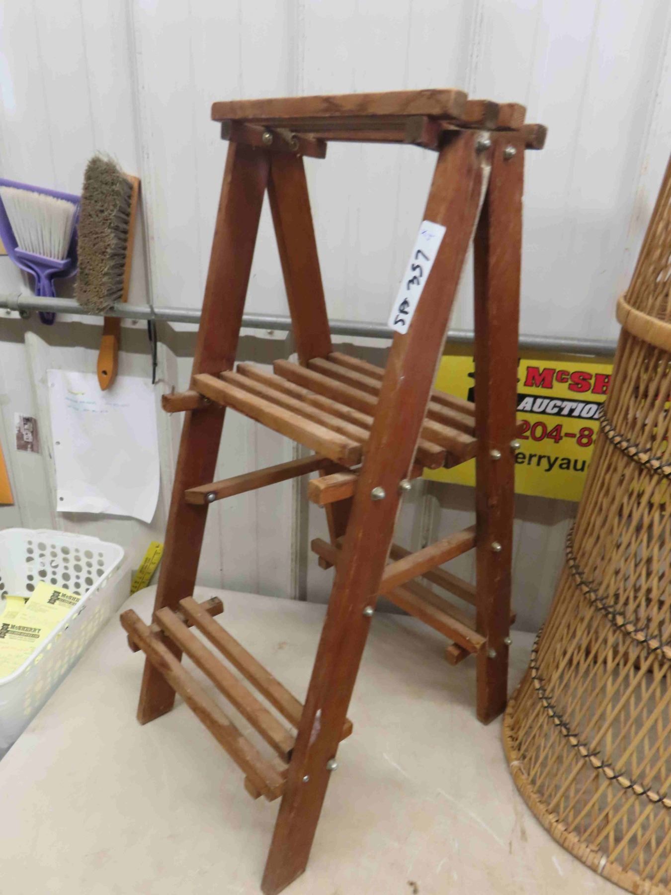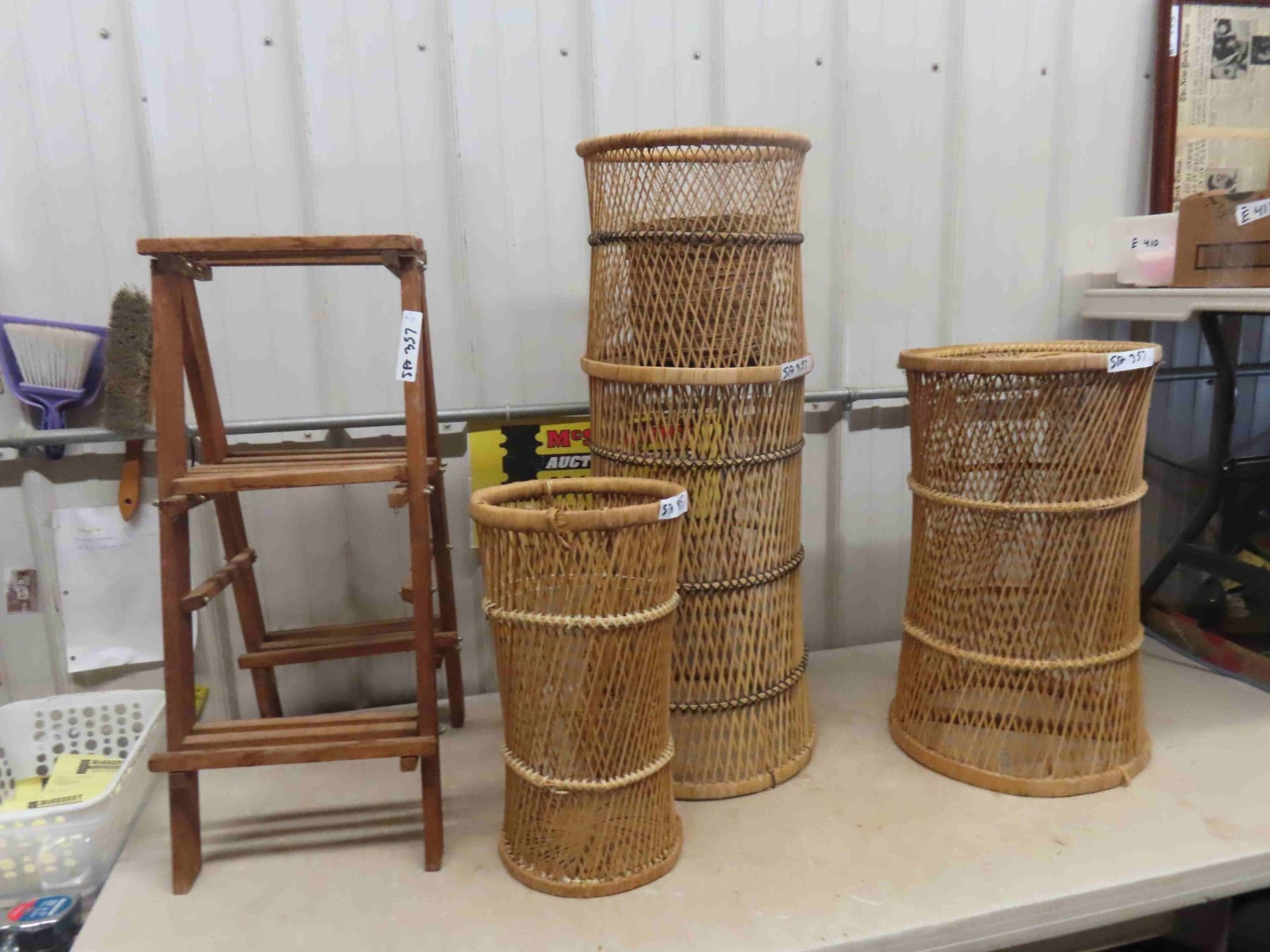 4 Items ; Wicker Plant Stand & Wooden Planter