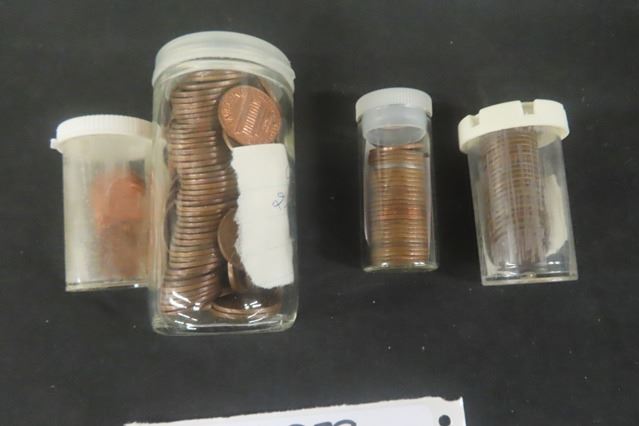 4 Jars of Assorted US Pennies - Approximately 100 -1917 and Up