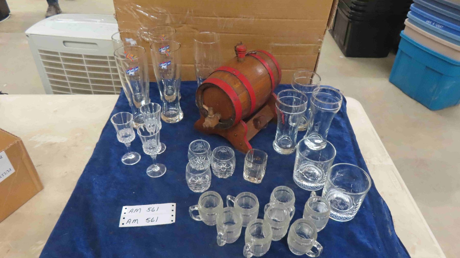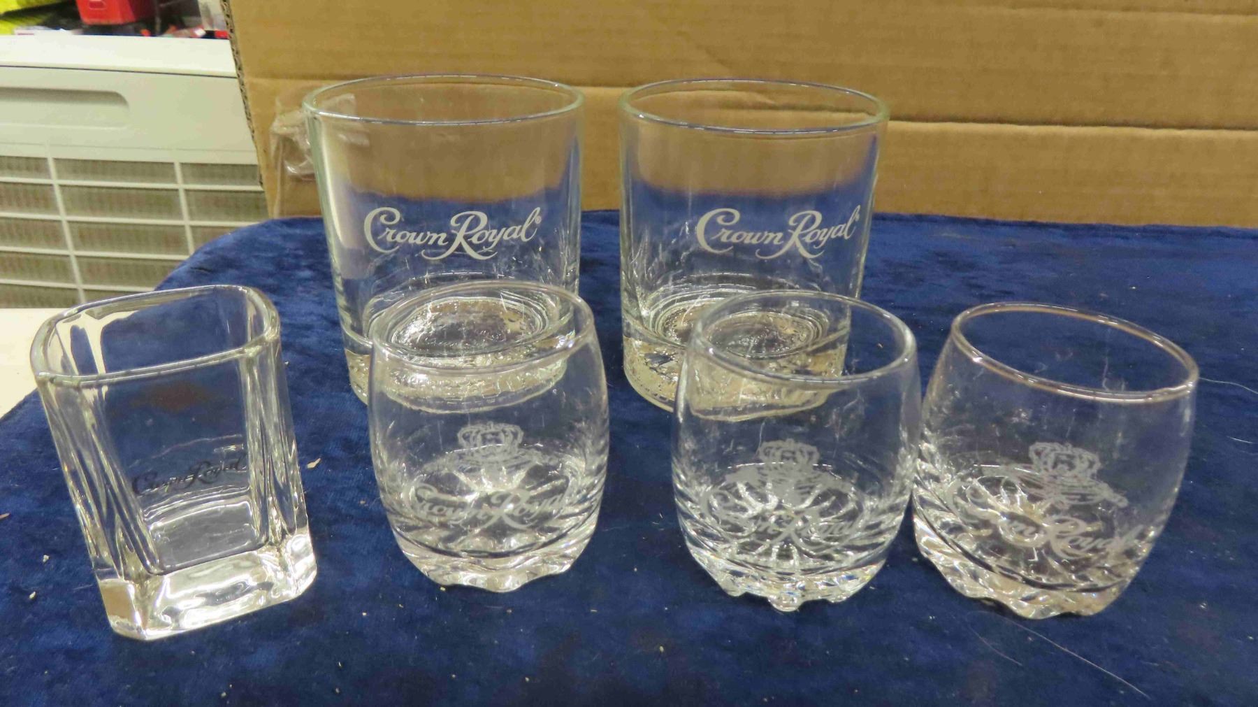 4 Labatt's Lite Beer Glasses, 3 Crystal Sherry, 3 MLCC Draft Glasses, Crown Royal, plus more