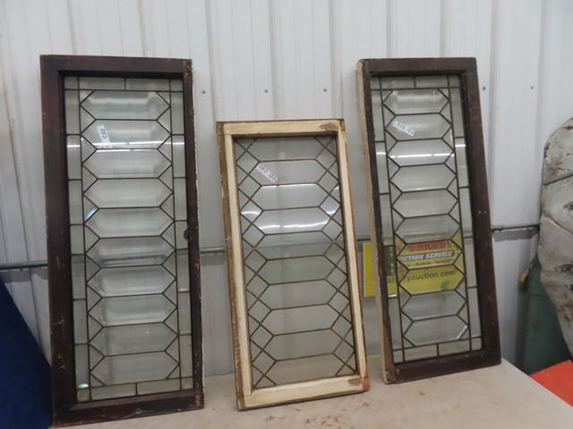 4 Leaded WIndows 19" x 42" , 19" x 40" , & 2) 19" x 48"