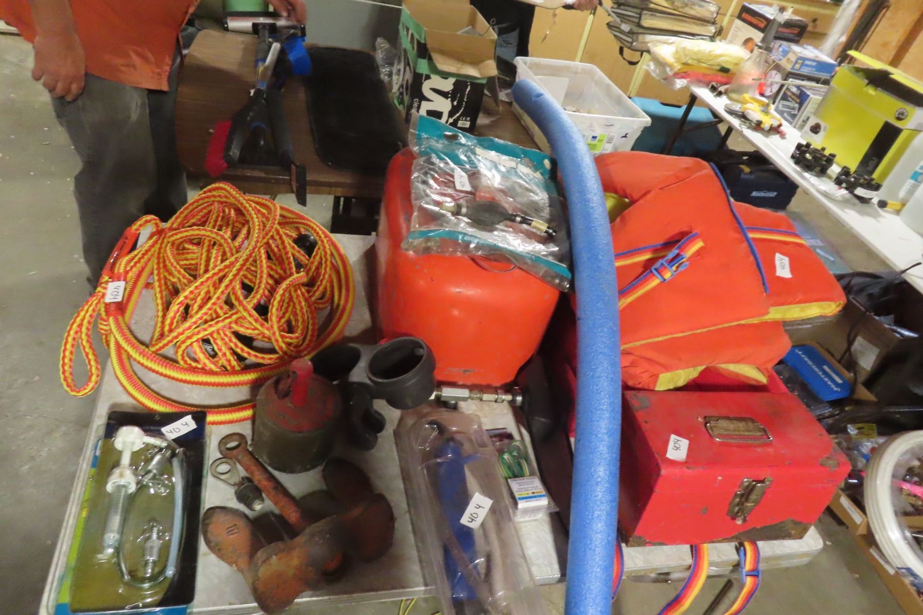 4 Life Jackets, Bungee Boat Tow Rope, Bilge Pump, Marine Oil Pump Anchors, Water Ears, Gas Tank