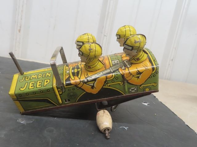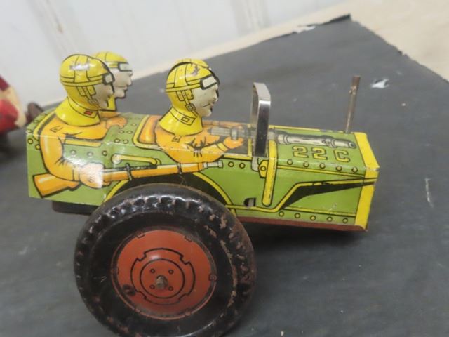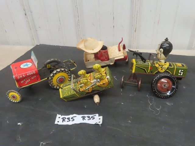 4 Marx Tin Windup Jeeps for Restore - Missing Wheels + Parts