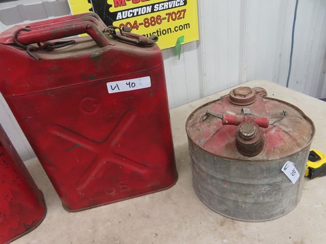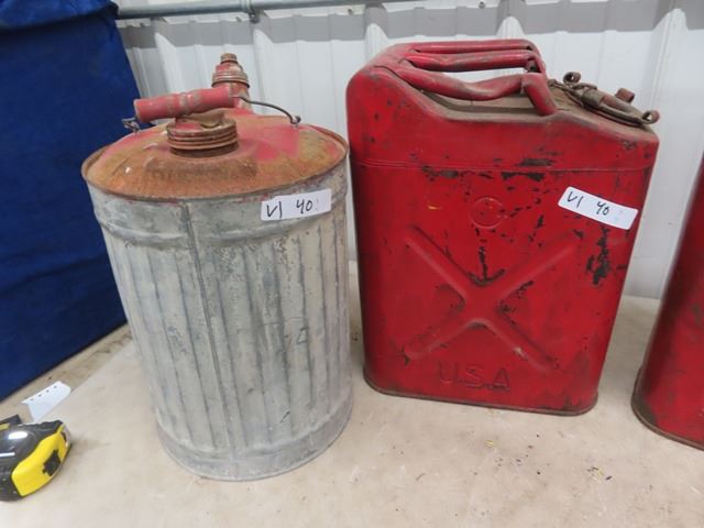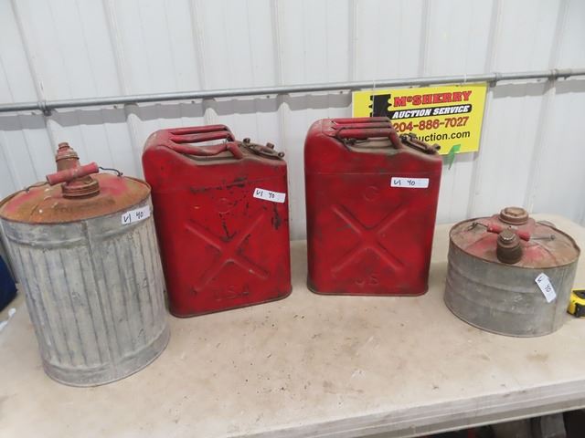 4 Metal Gas Cans & 2 USA Military Cans