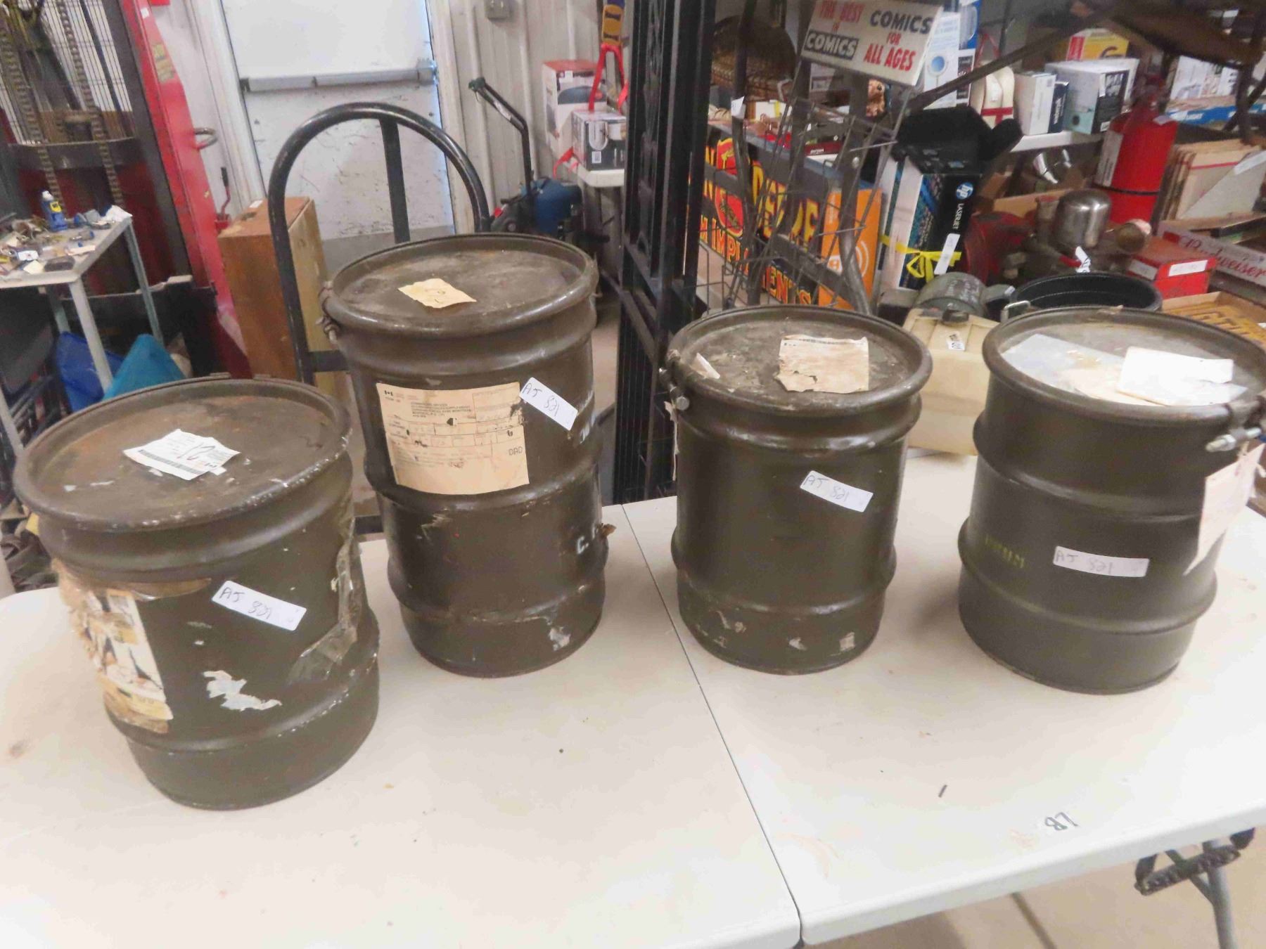 4 Military Canisters - 2 Sizes ; (3) 12" x 14" t & (1) 12" x 18" t