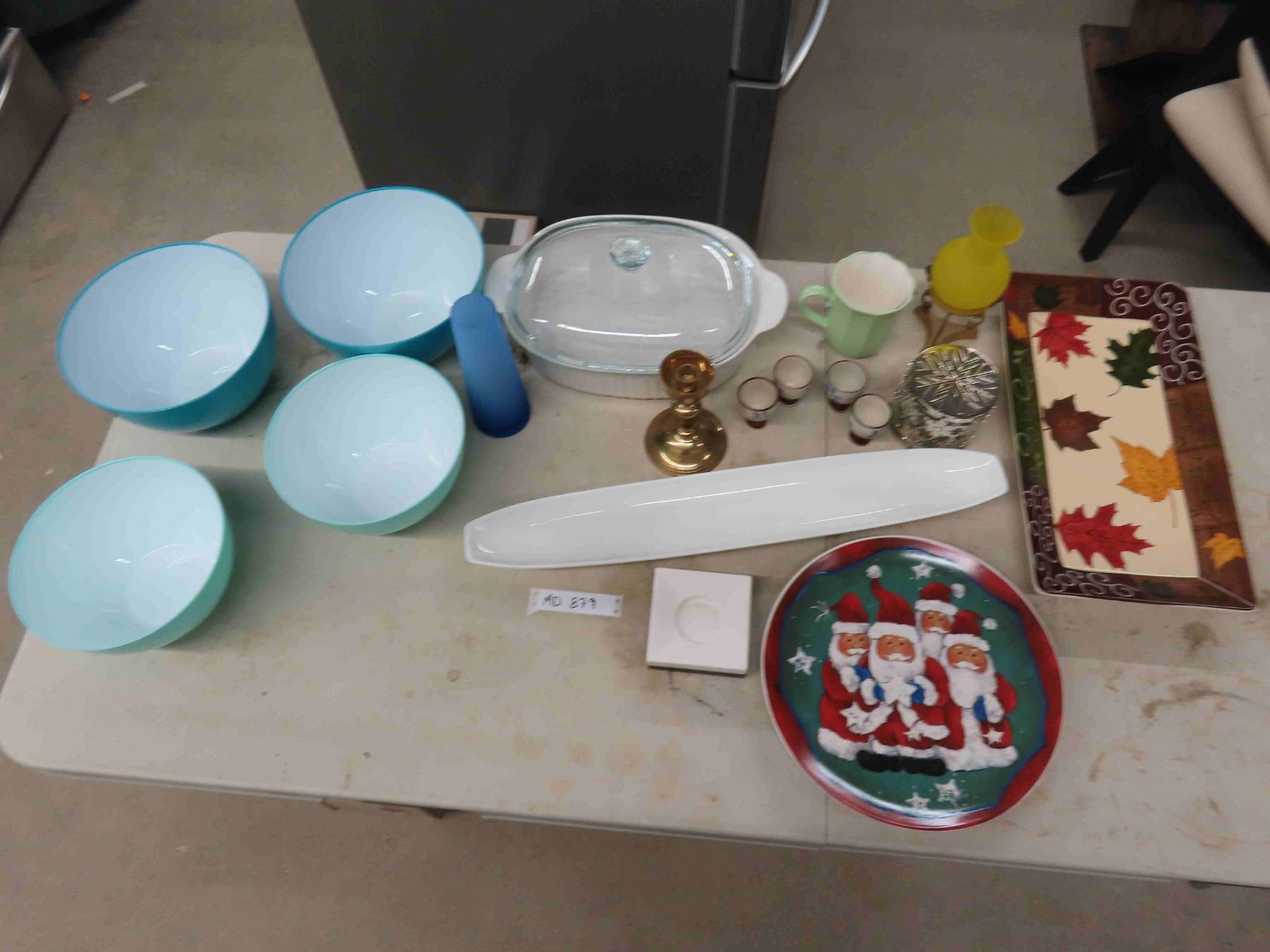 4 Mixing Bowls Plastic, Casserole Dish with Lid, 3 Serving Plates, Candle Holder & More