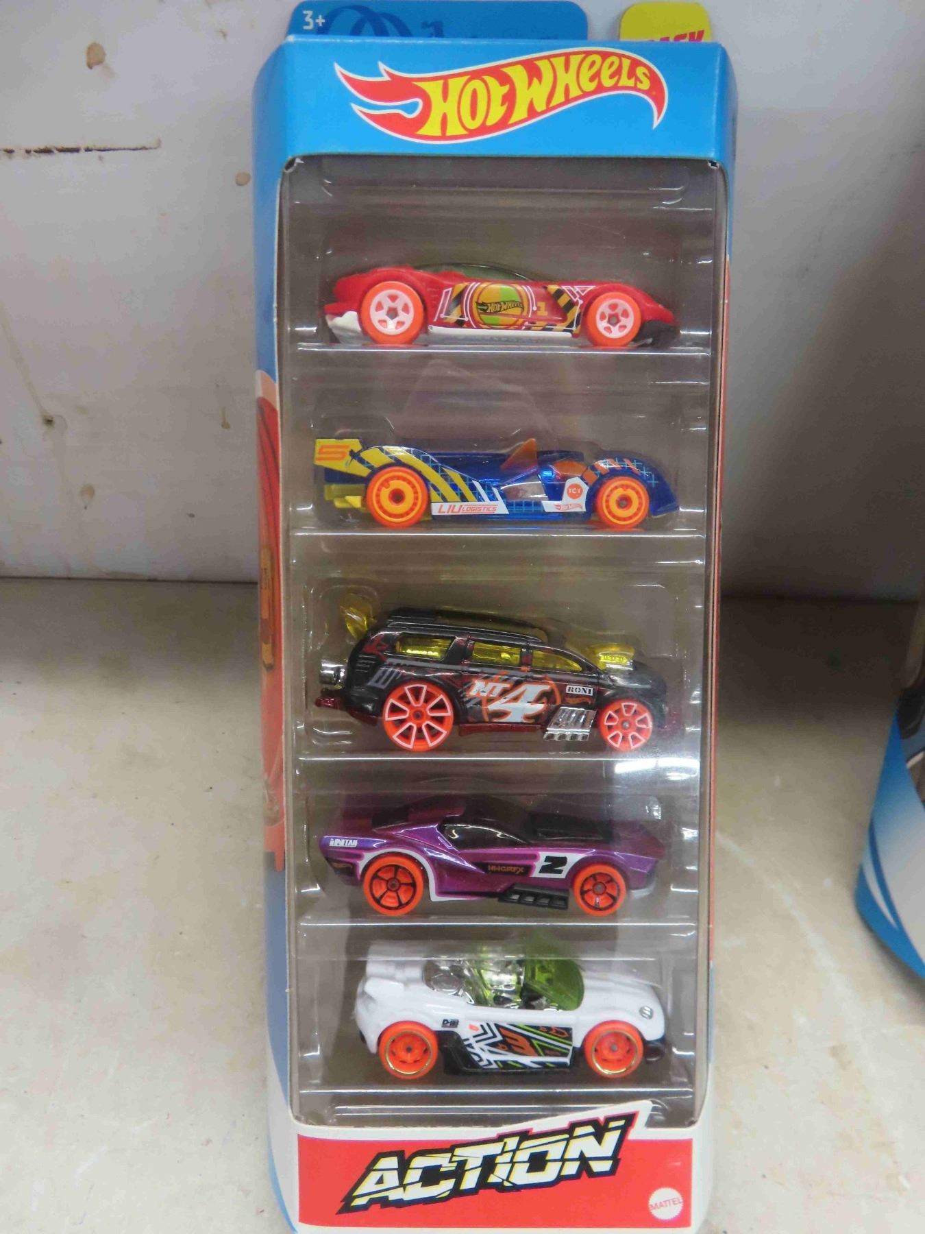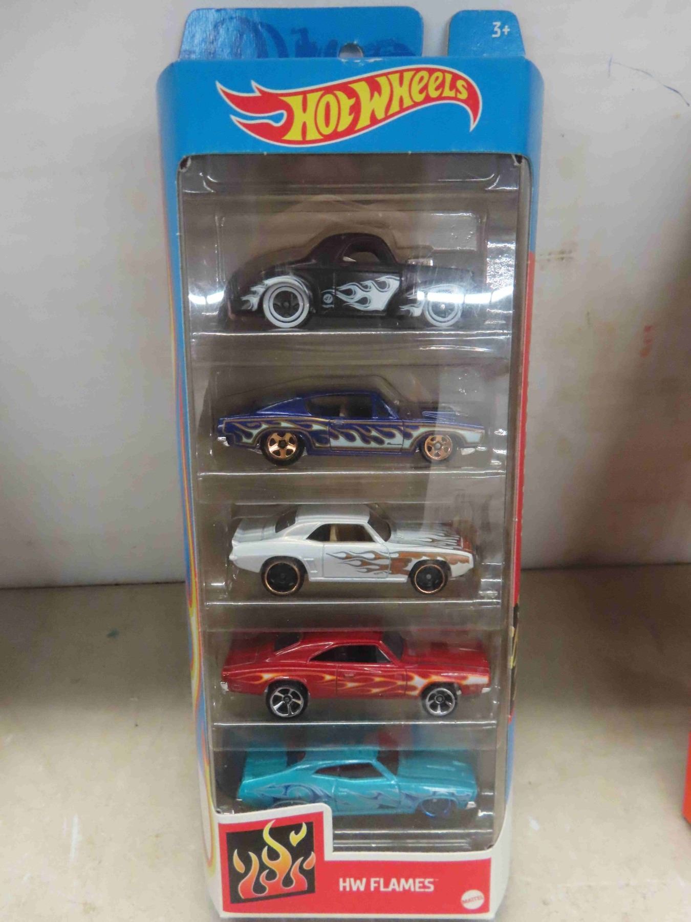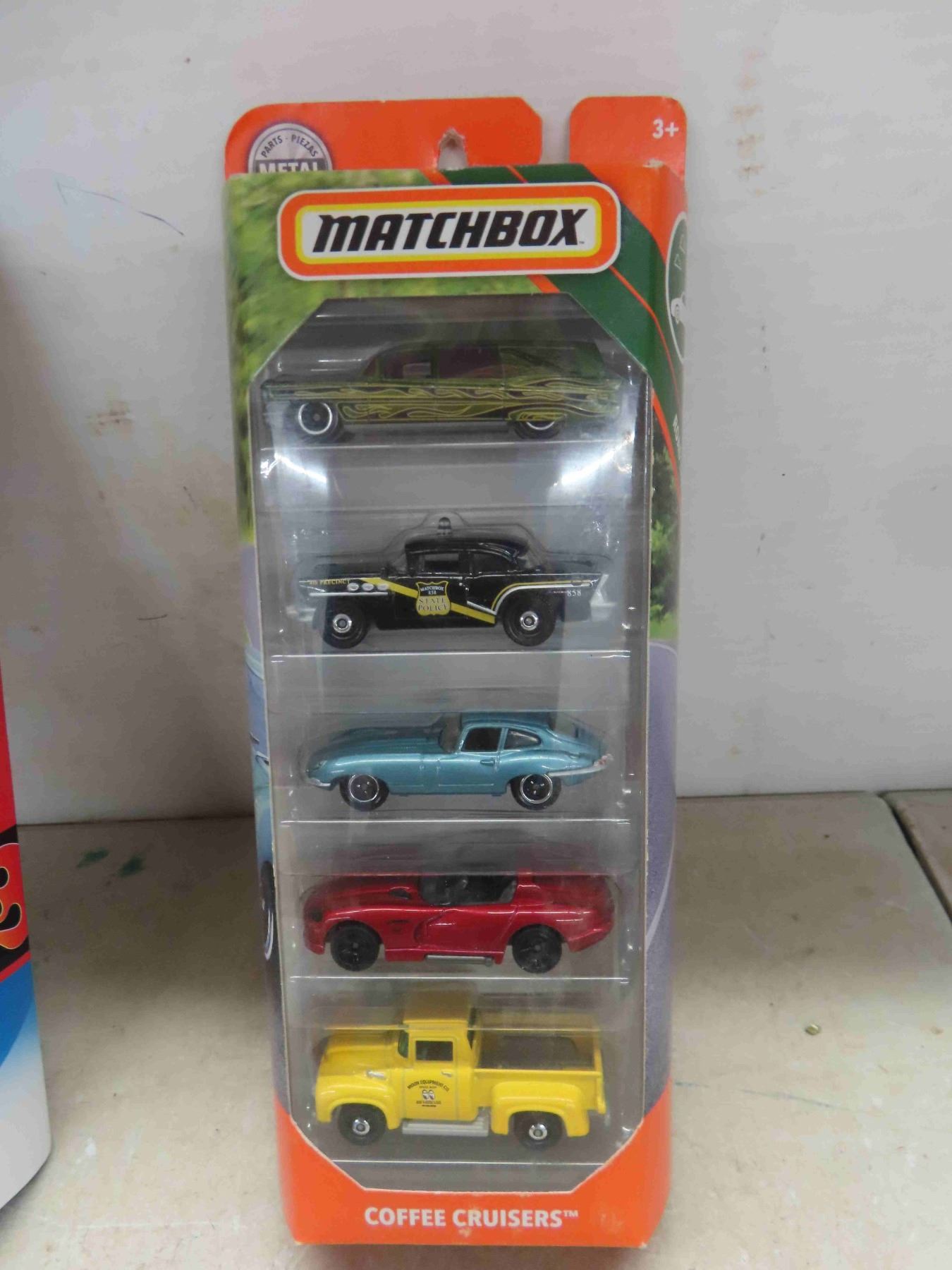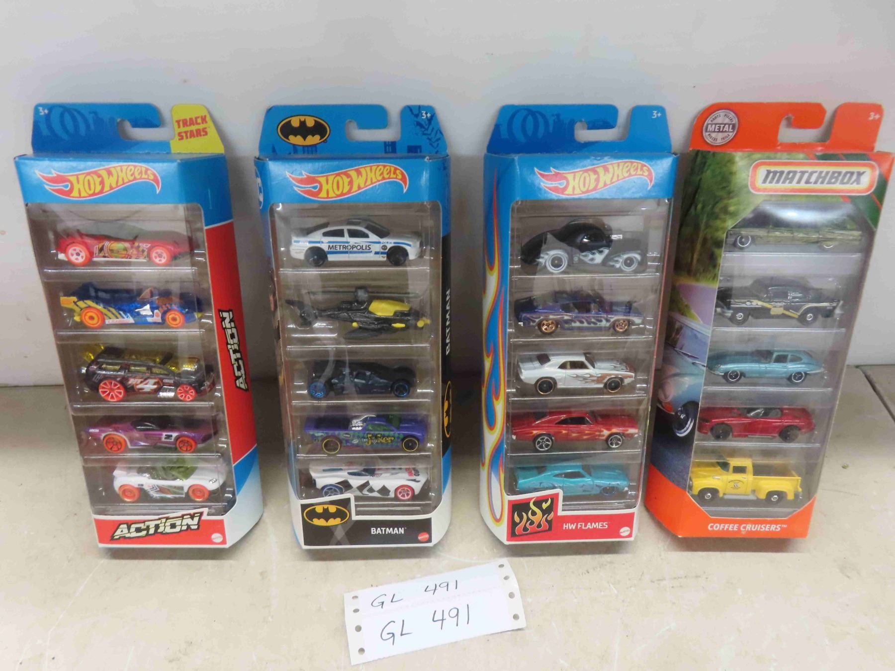 4 New 4 Pack Hot Wheels + Matchbox Diecast : HW Flames, Batman, Coffee Cruisers, Action.