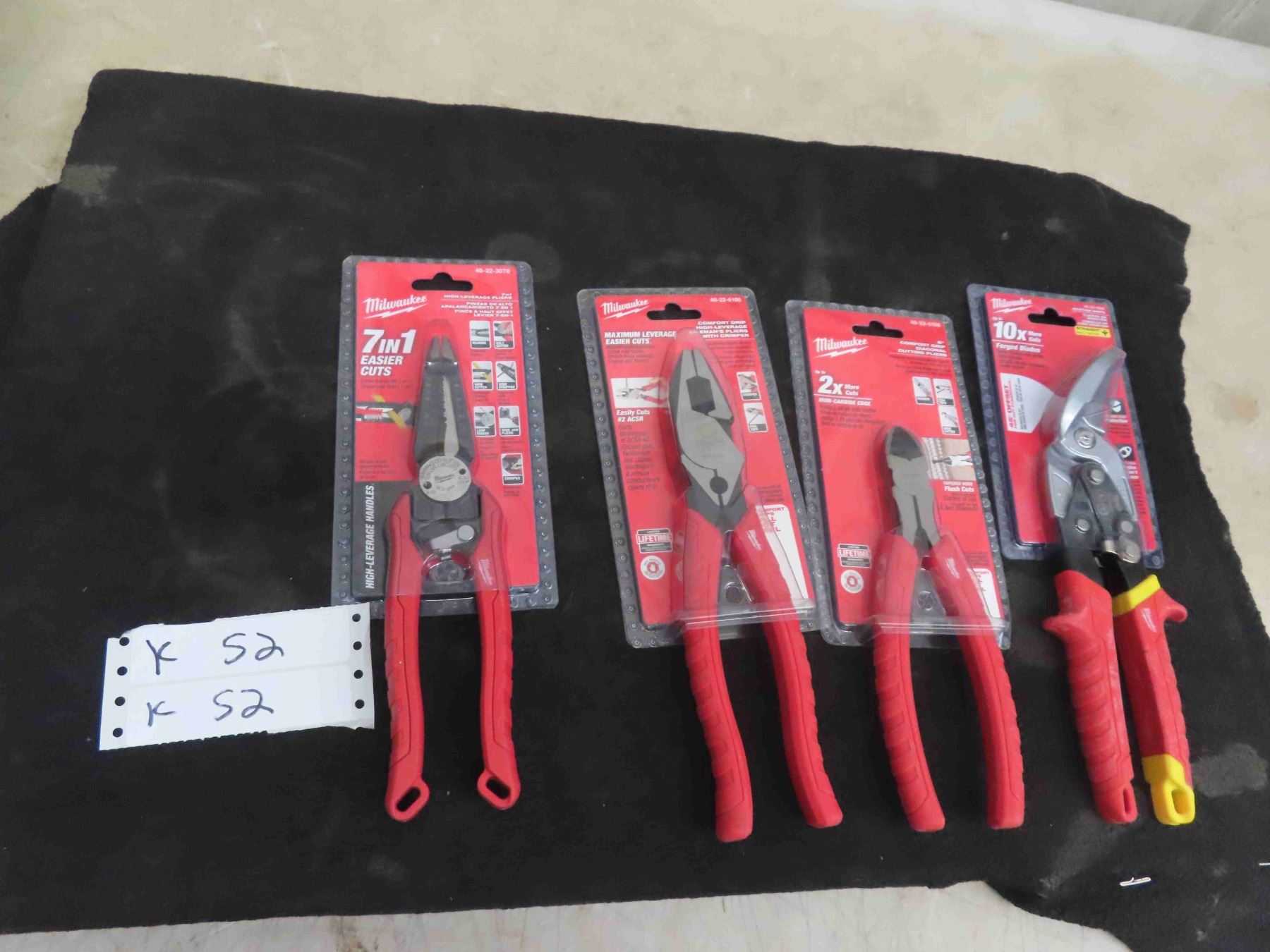 4 New Milwaukee Tools : Aviation Snips, Diagonal Cutting Pliers, Linesman Plier with Crimper, High Leverage Pliers 7in1