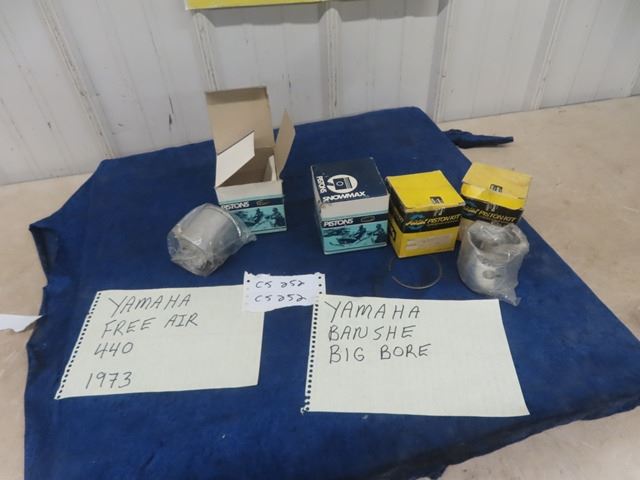 4 New Old Stock Yamaha Pistons from 1973 Freeair 440 & 2 Yamaha Bonshe Big Bore