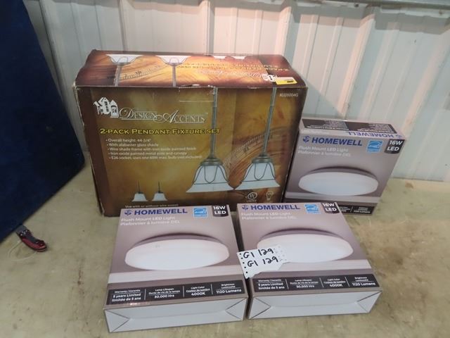 4 New Packages of New Light Fixtures, 3) Honeywell LED Lights, & 1) Design Accent Pendant Set