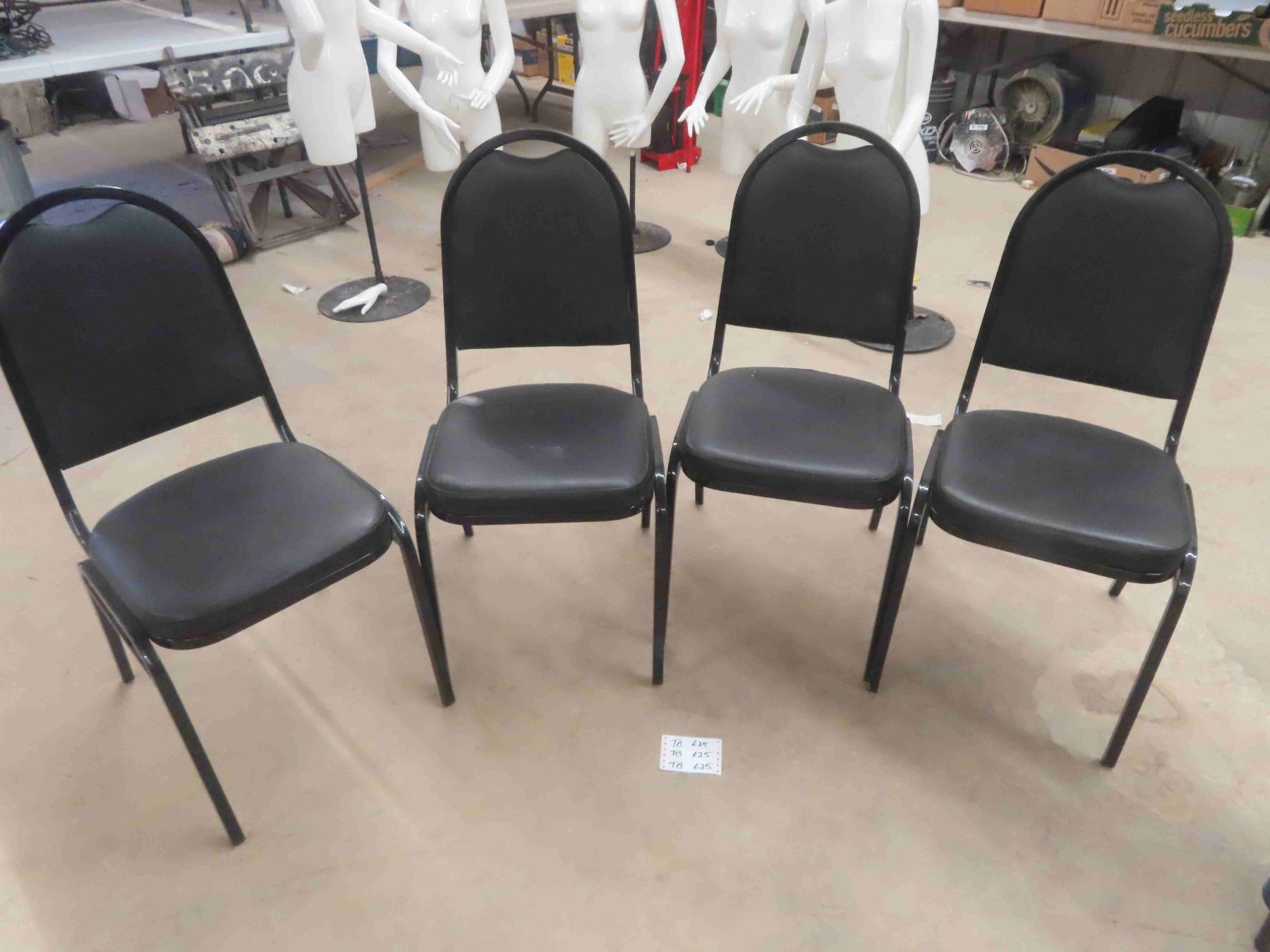 4 Office Chairs Black Leather / Vinyl Seats