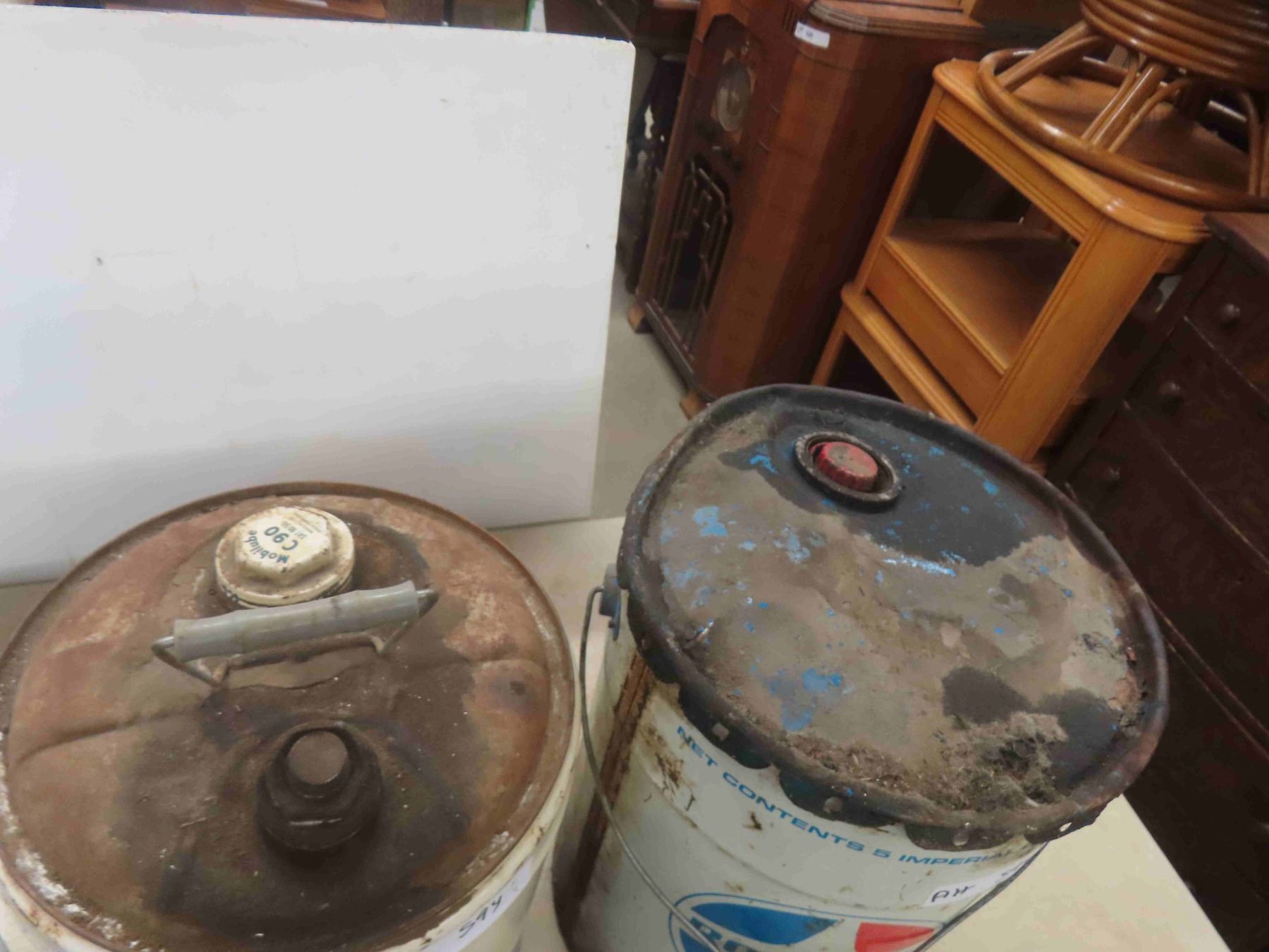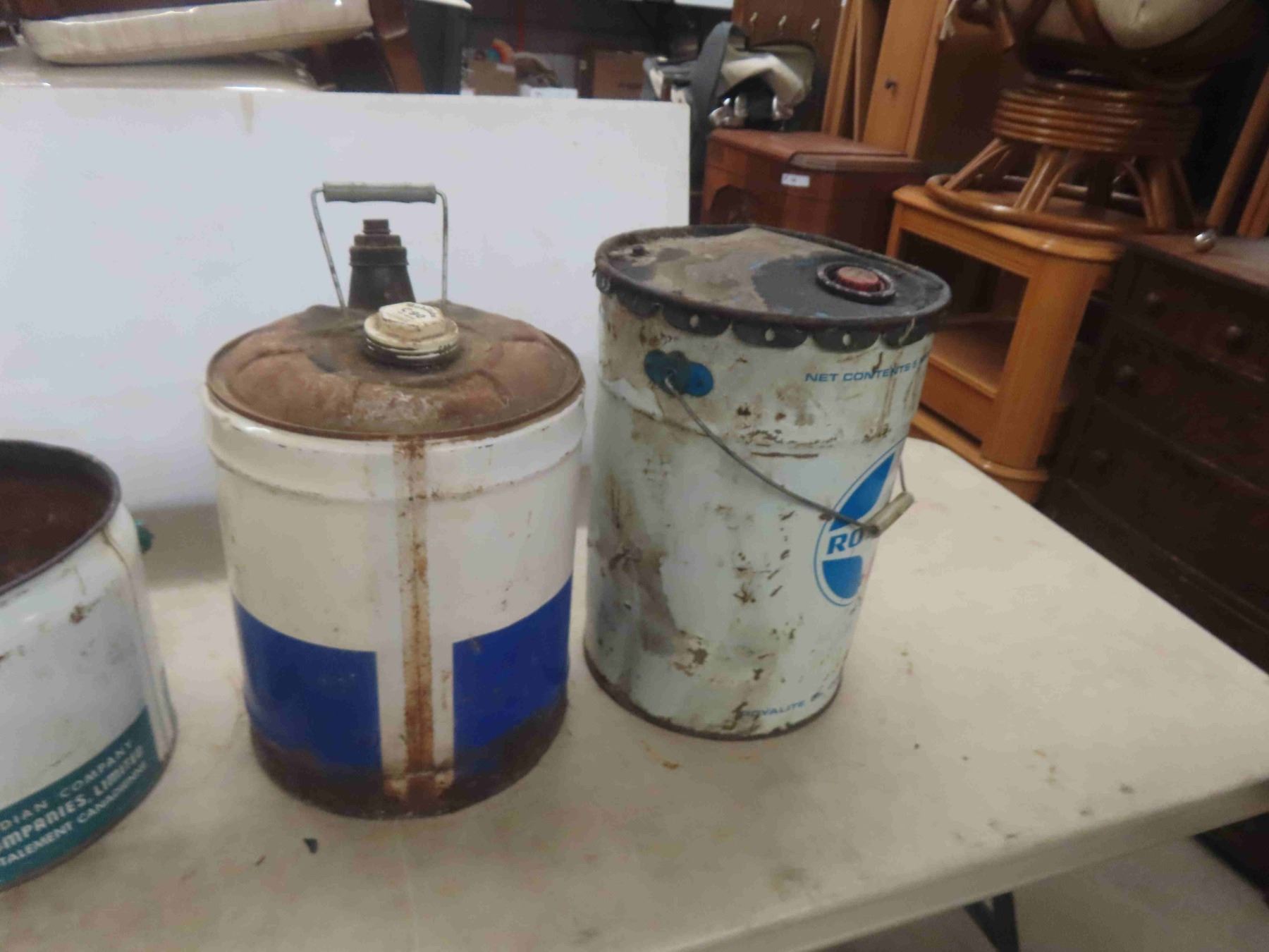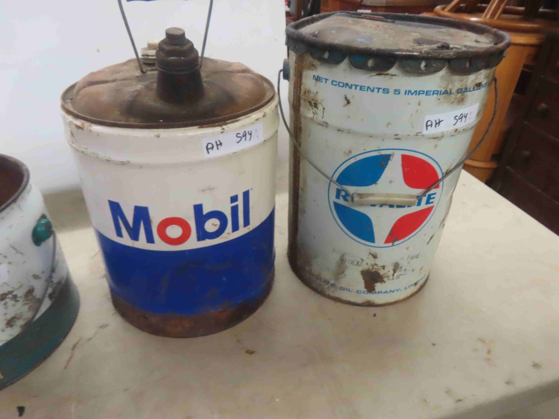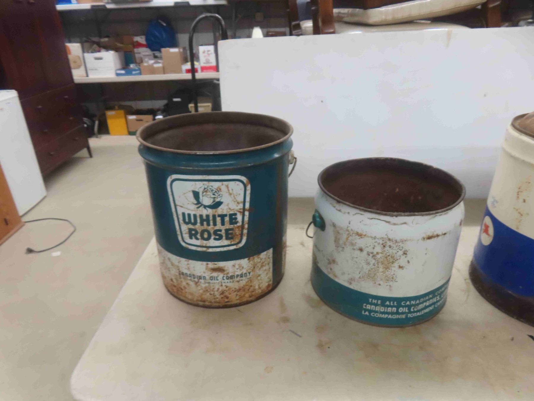 4 Oil/Grease Pails : 2 White Rose 35lbs + 25lbs , Mobil 5 Gallon , Royalite 5gal