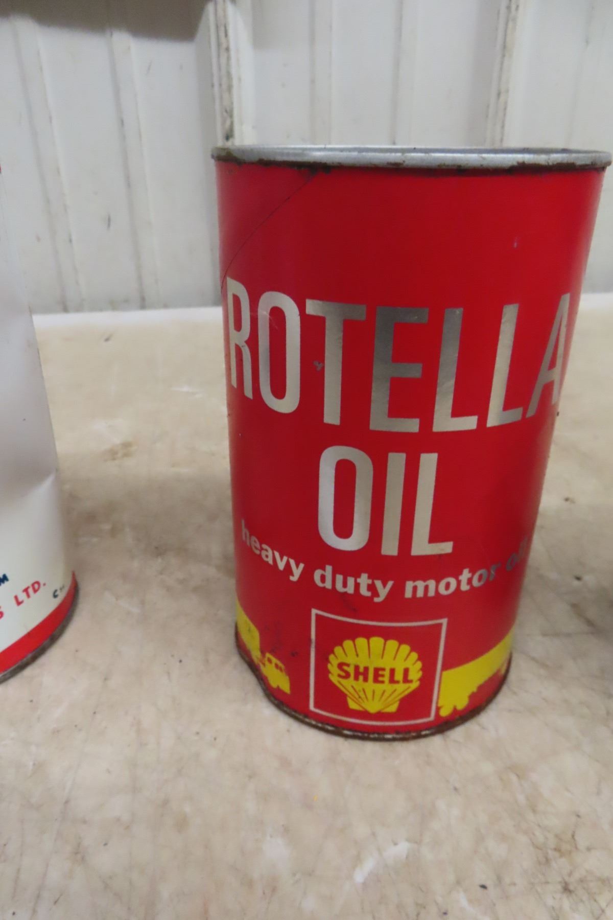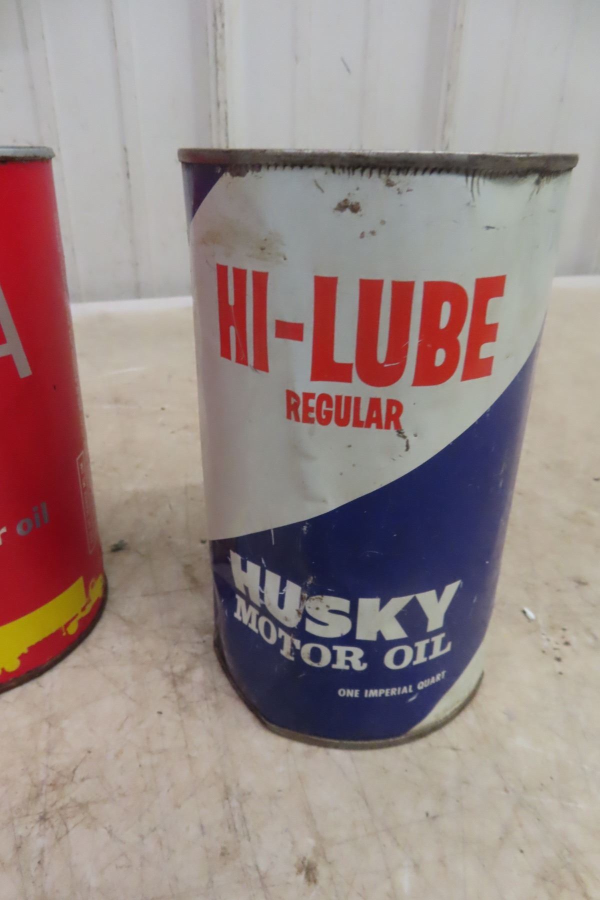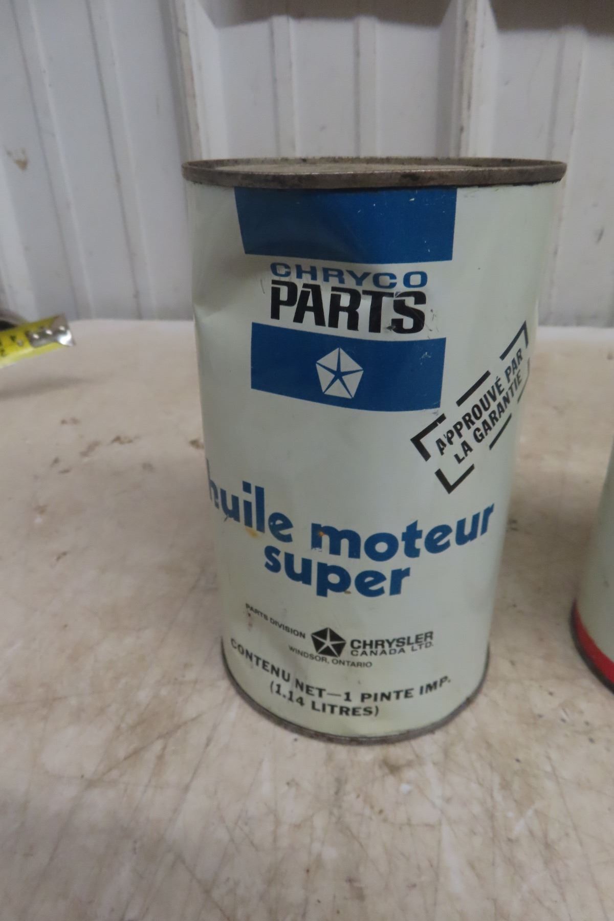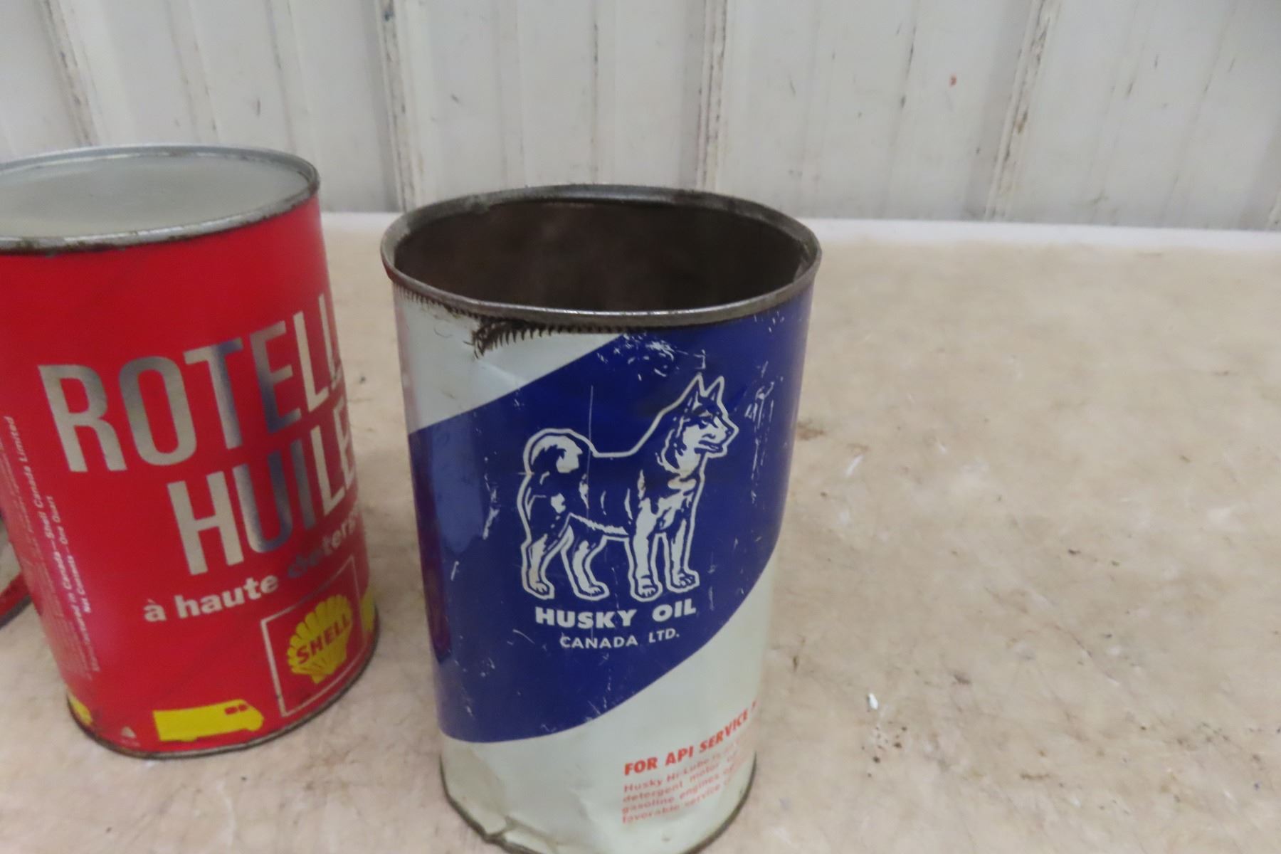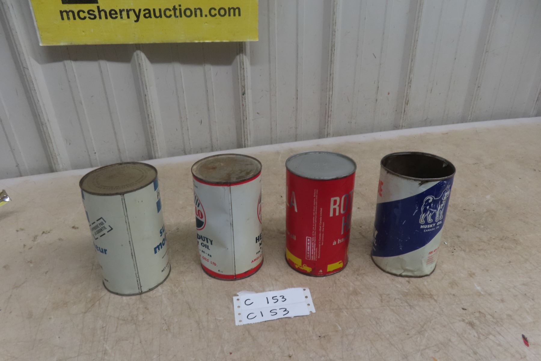 (4) Oil Quart Cans. (2) with Product. Anglo, Chryco, Shell, Husky.