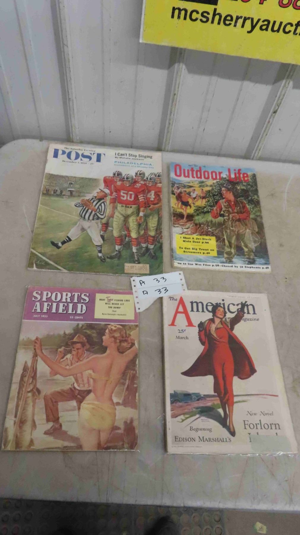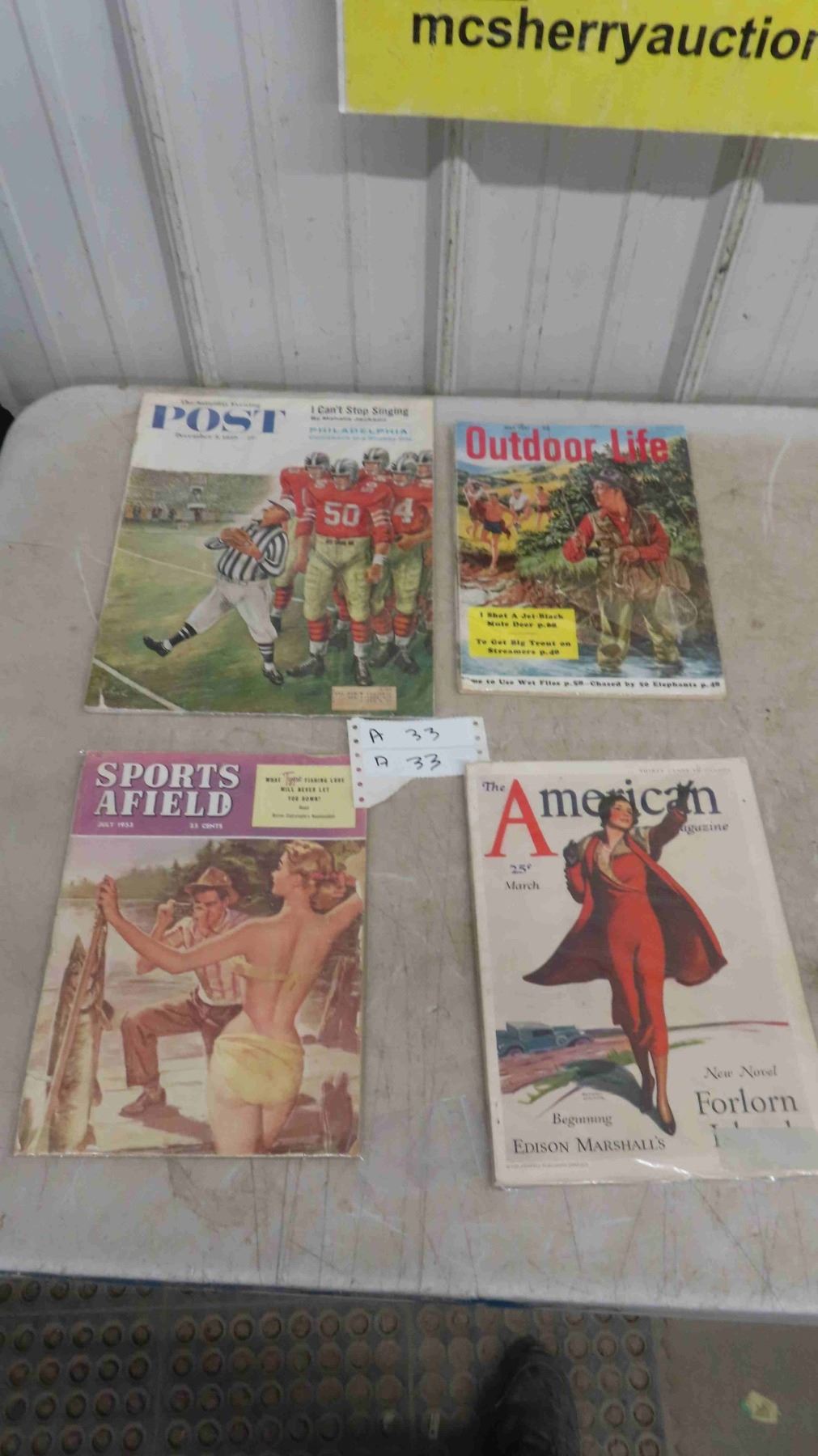 4 Old Magazines: 1959 The Post, 1957 The Outdoor Life, 1932 The American, 1953 Sports Afield