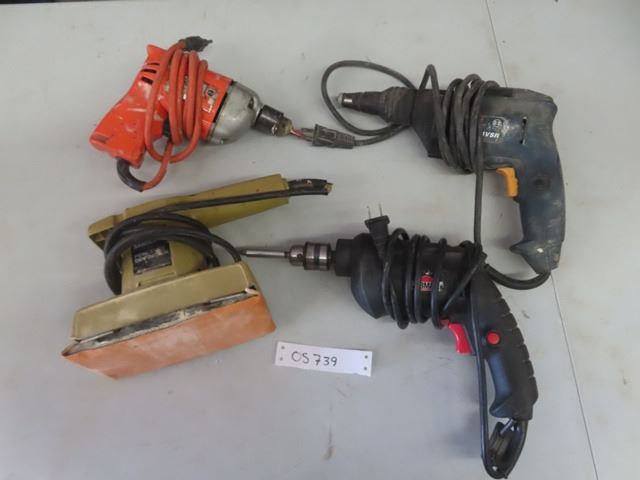 4 Older Power Tools; 2 Drills, Sander, Drywall Gun