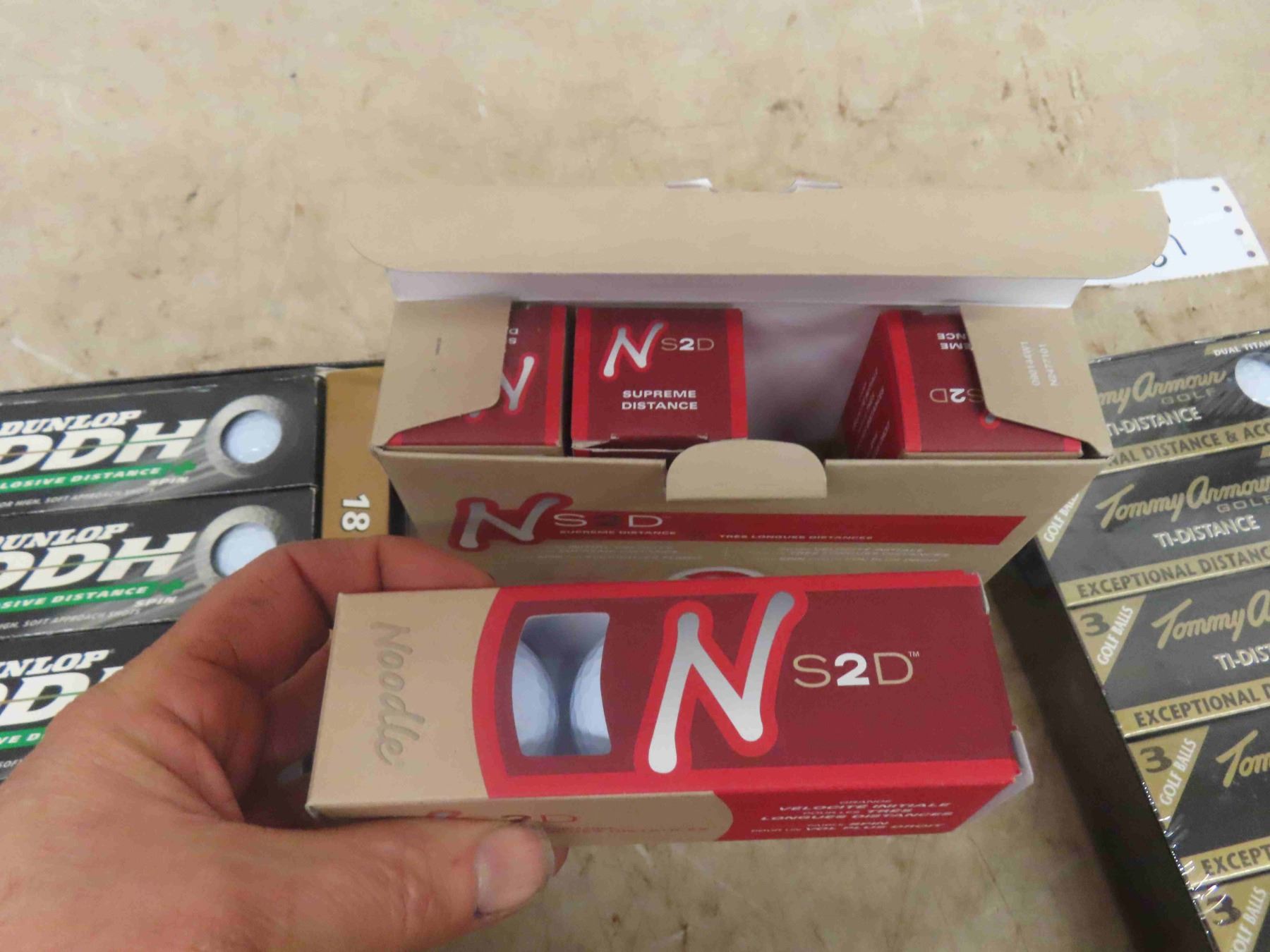 4 Packages of New Golf Balls ; Noodle, Dunlop. Maxfli, T Armour