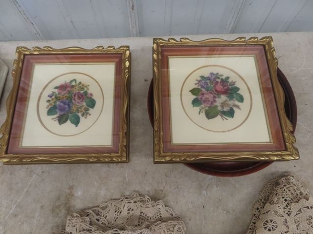 4 Pairs of Petti Point Pictures, Extra Frame & 2 Doilies