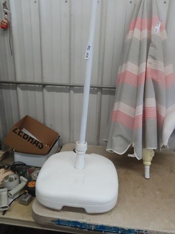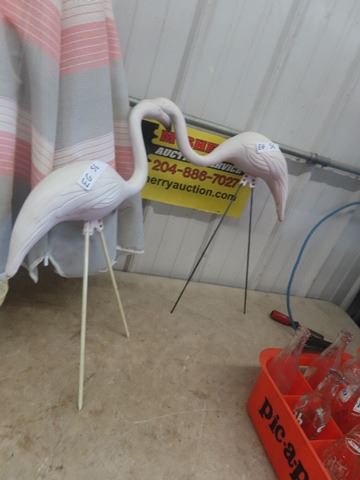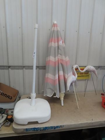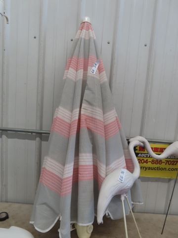 4 Patio Chairs with Self Standing Patio Umbrella & 2 Fraserwood Swan Ornaments