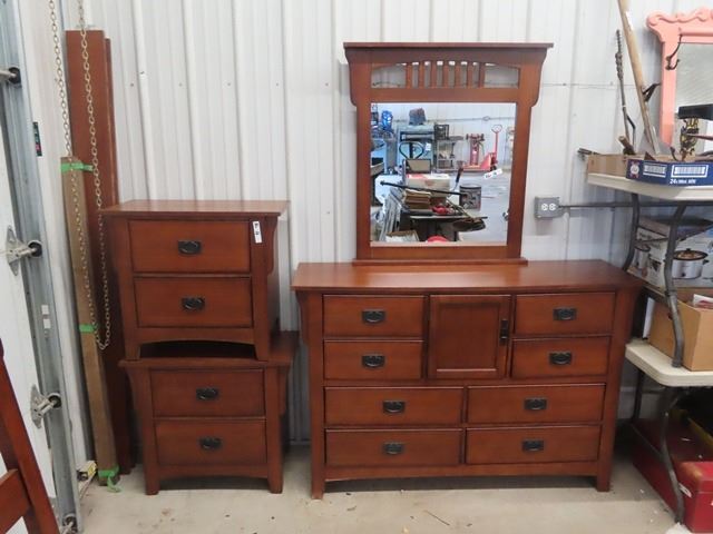 4 Pc BR Set Dresser & Mirror 40"H 60"W 18"D-Plus Mirror 32" x 40" , 2 Nite Tables 26"H 30"W 16" D x 2, Headboard 62"W