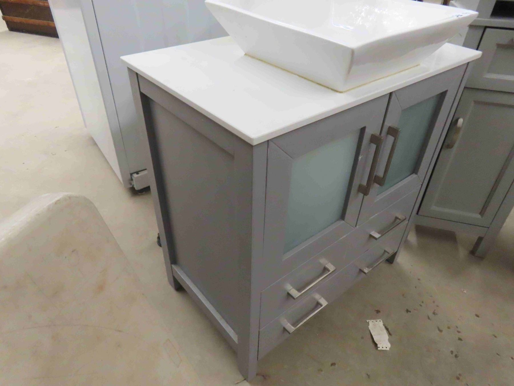 4 Piece Bathroom Set: Vanity 31'' x 30'' x 18 1/2'' , Sink and Cabinet 58'' x 15'' x 12 1/2'' , Medicine Cabinet 27'' x 24'' x 9'' , Mirror 28'' x 29''