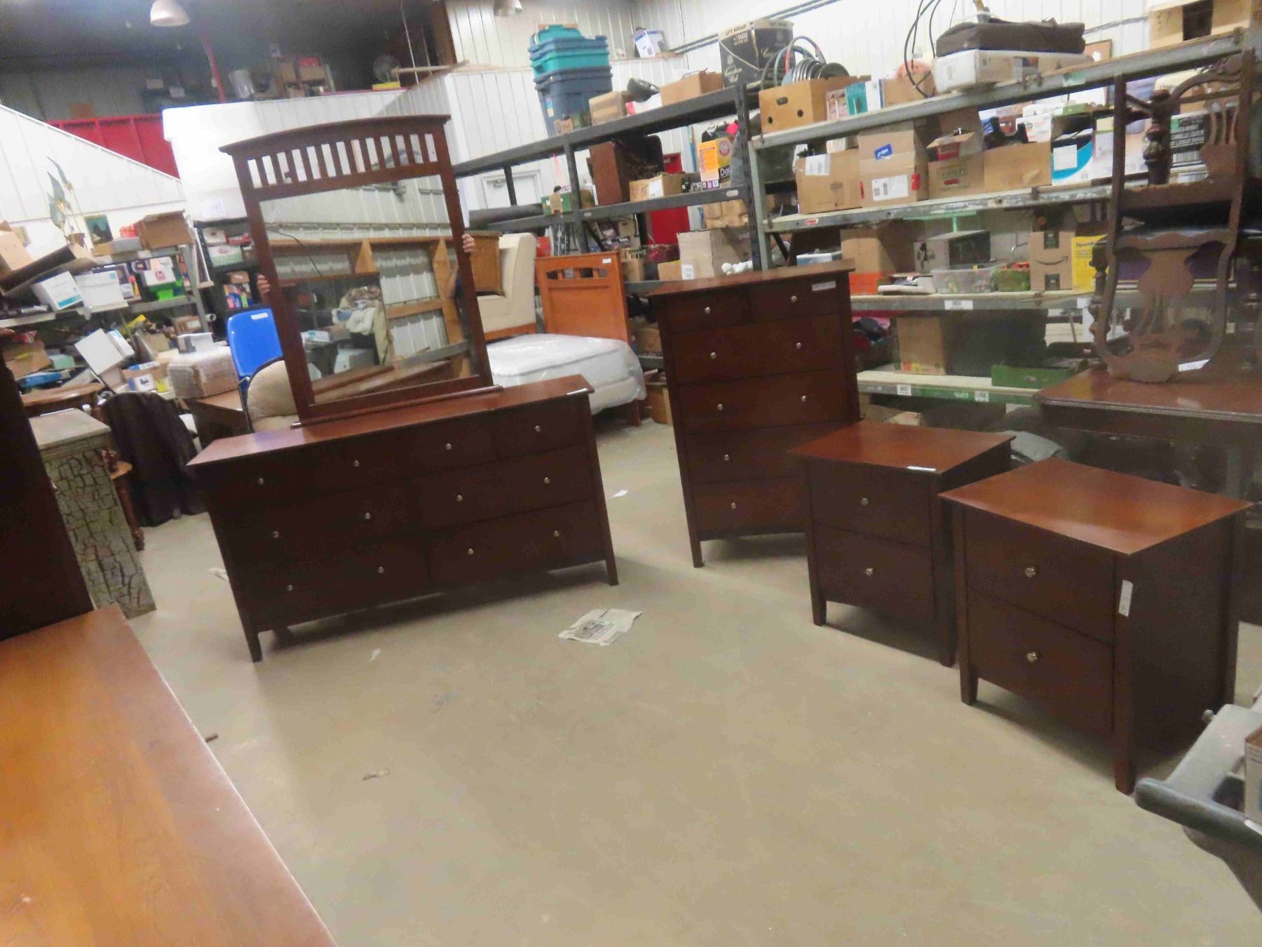 4 Piece Bedroom Suite : Dresser 18'' x 34'' x 63 1/2'' Plus Mirror 47'' x 34'' , Dresser 48'' x 32 1/2'' x 18'' , 2 Night Stands 26'' x 24'' x 18''