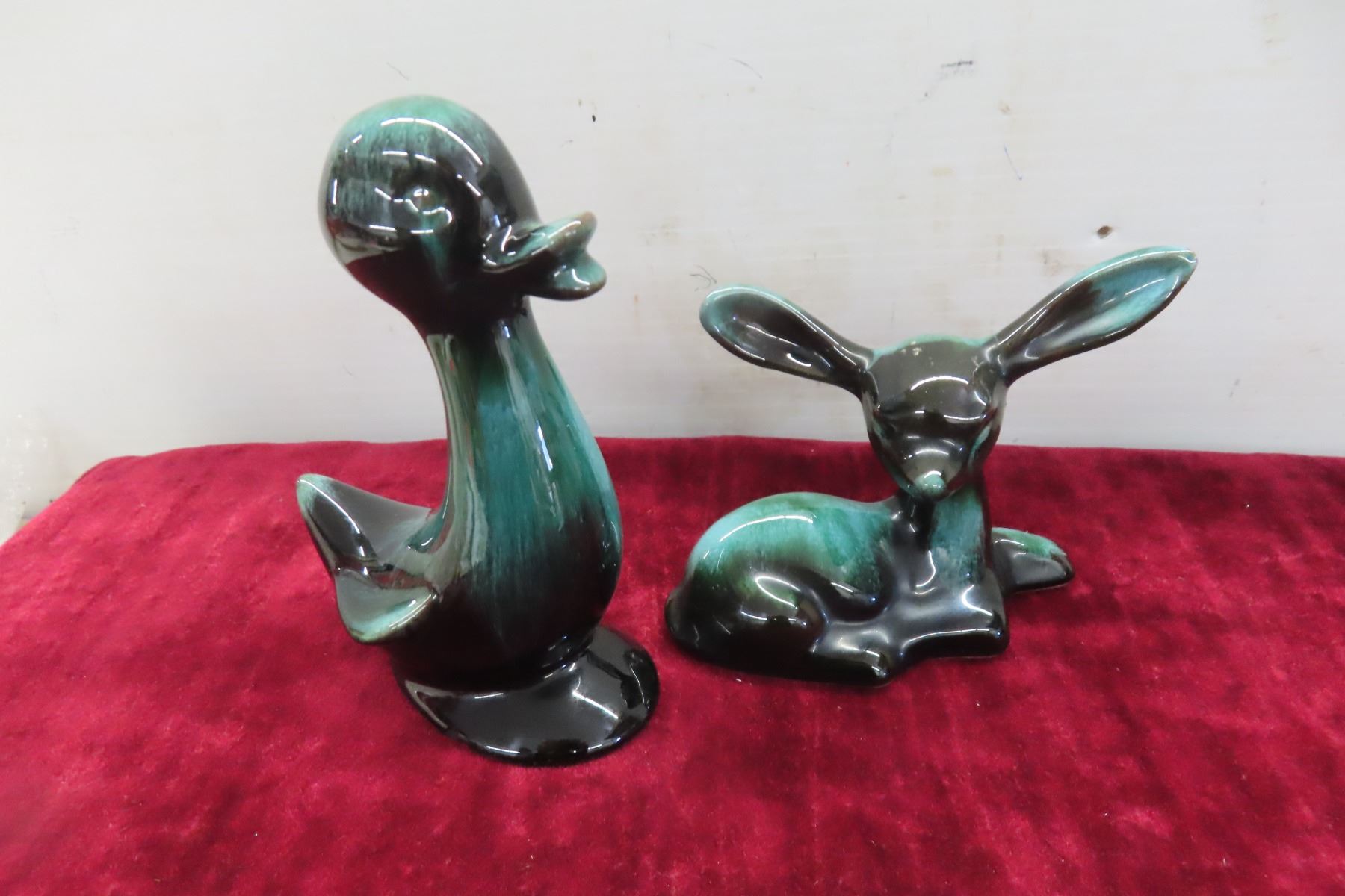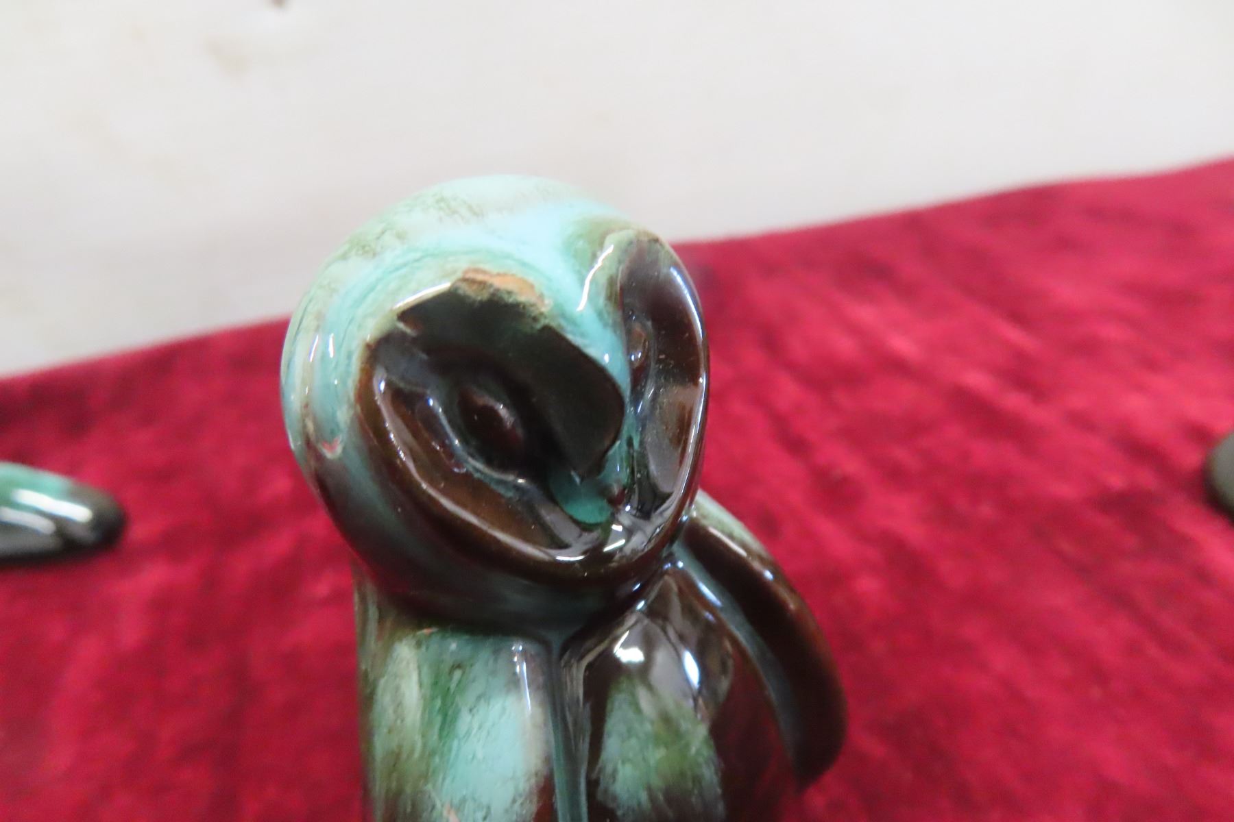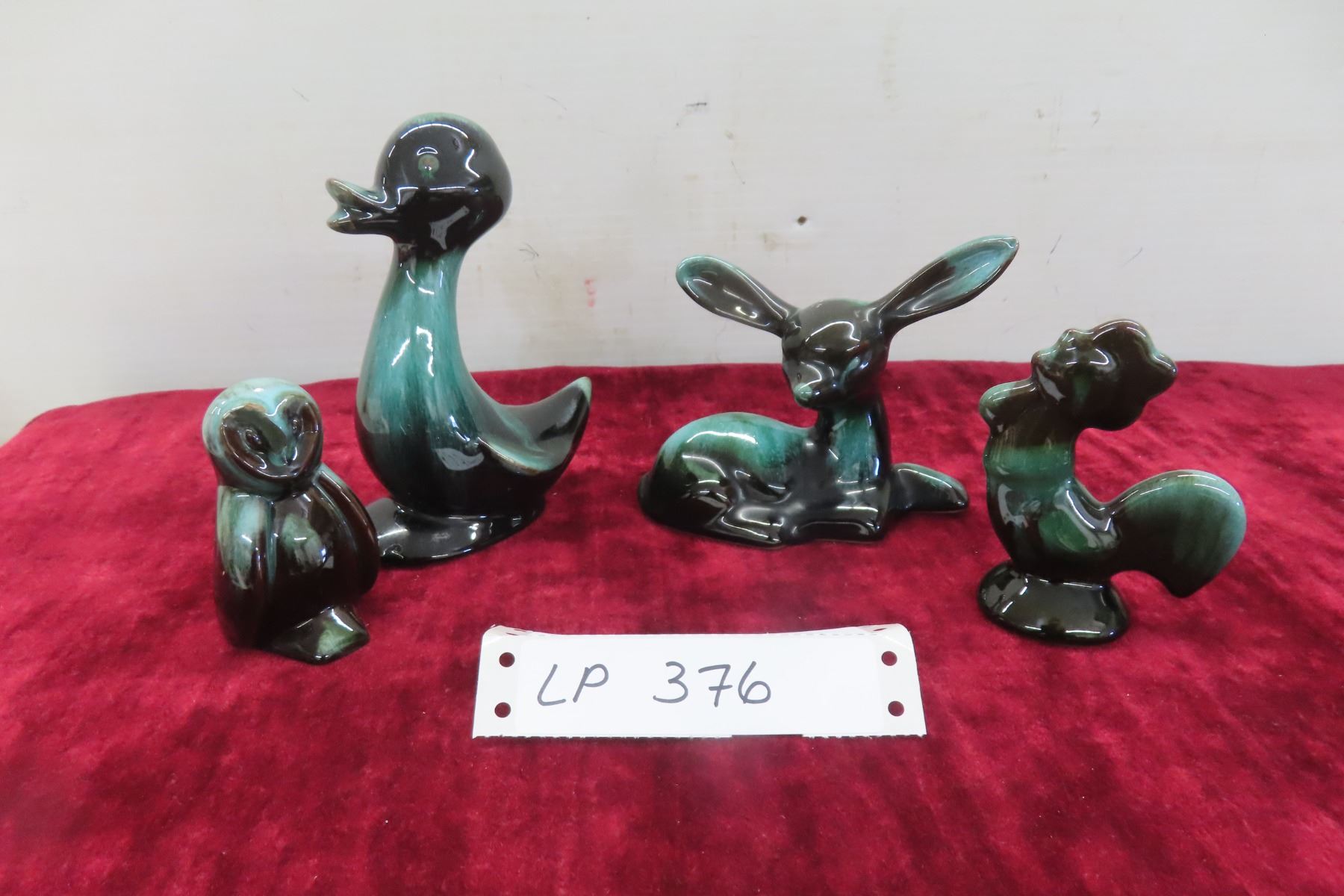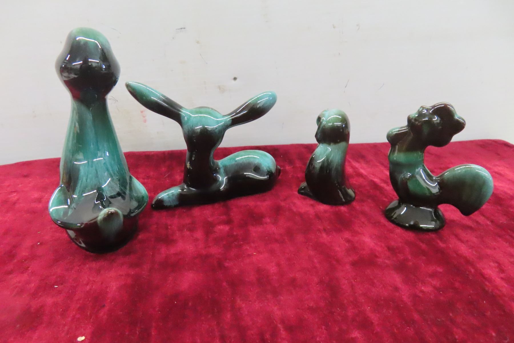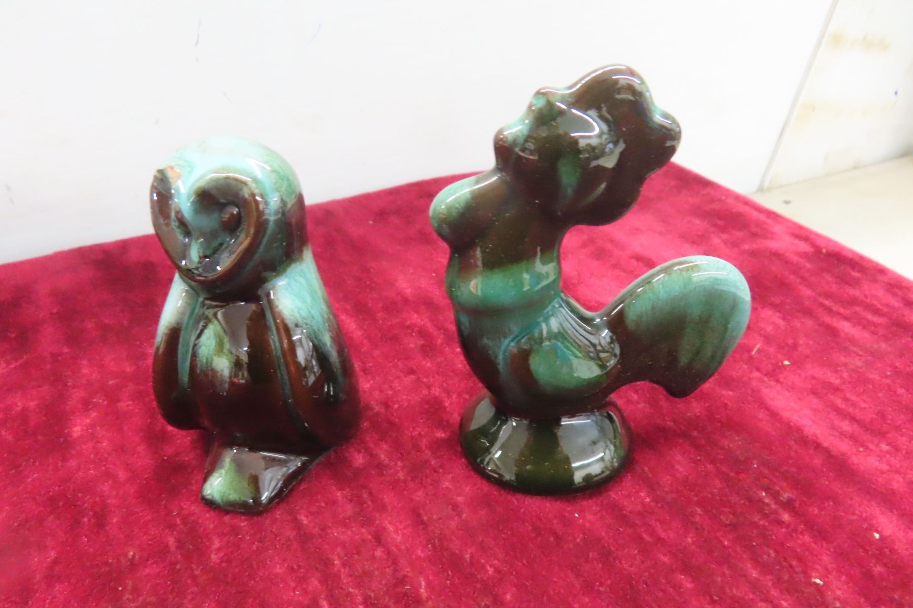 4 Pieces Blue Mountain Pottery: Duck, Deer, Rooster and Owl. Tallest 5 3/4