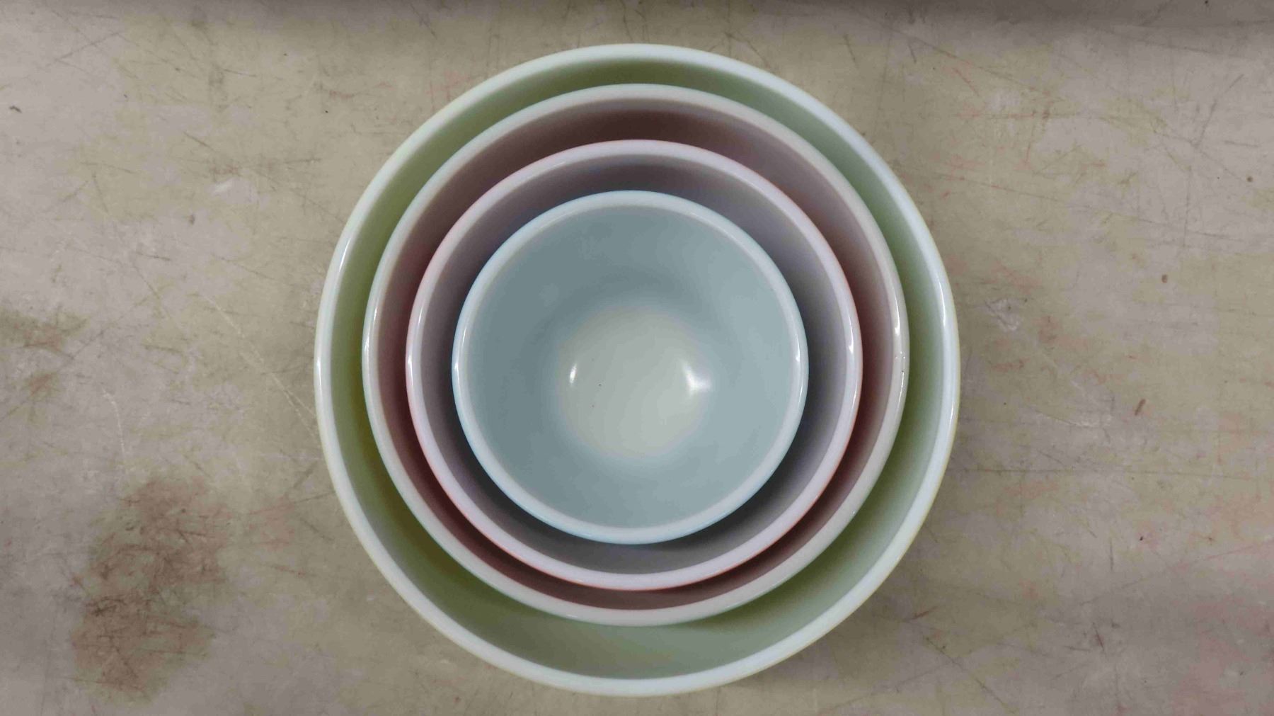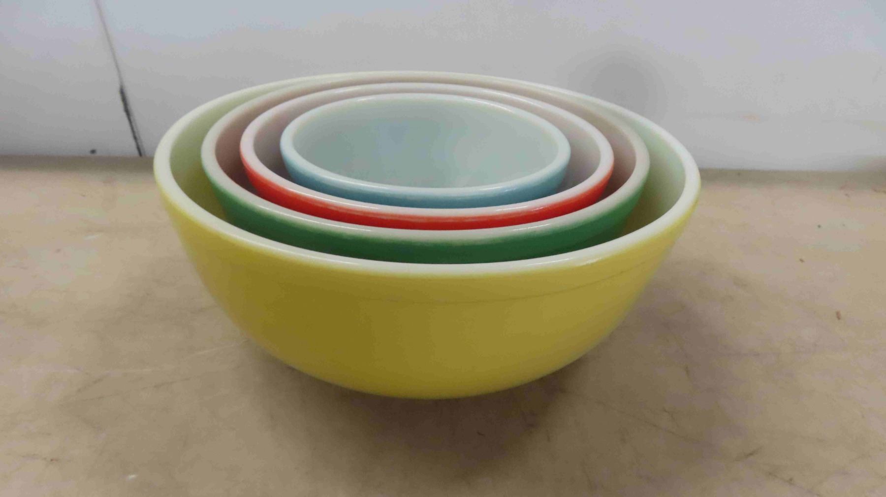 4 Pieces of 1950s Pyrex Primary Colors Nesting Bowl Set
