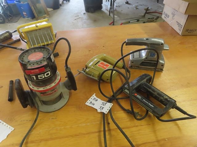 4 Power Tools ; Craftsman Router, Jig Saw, Sander Stapler