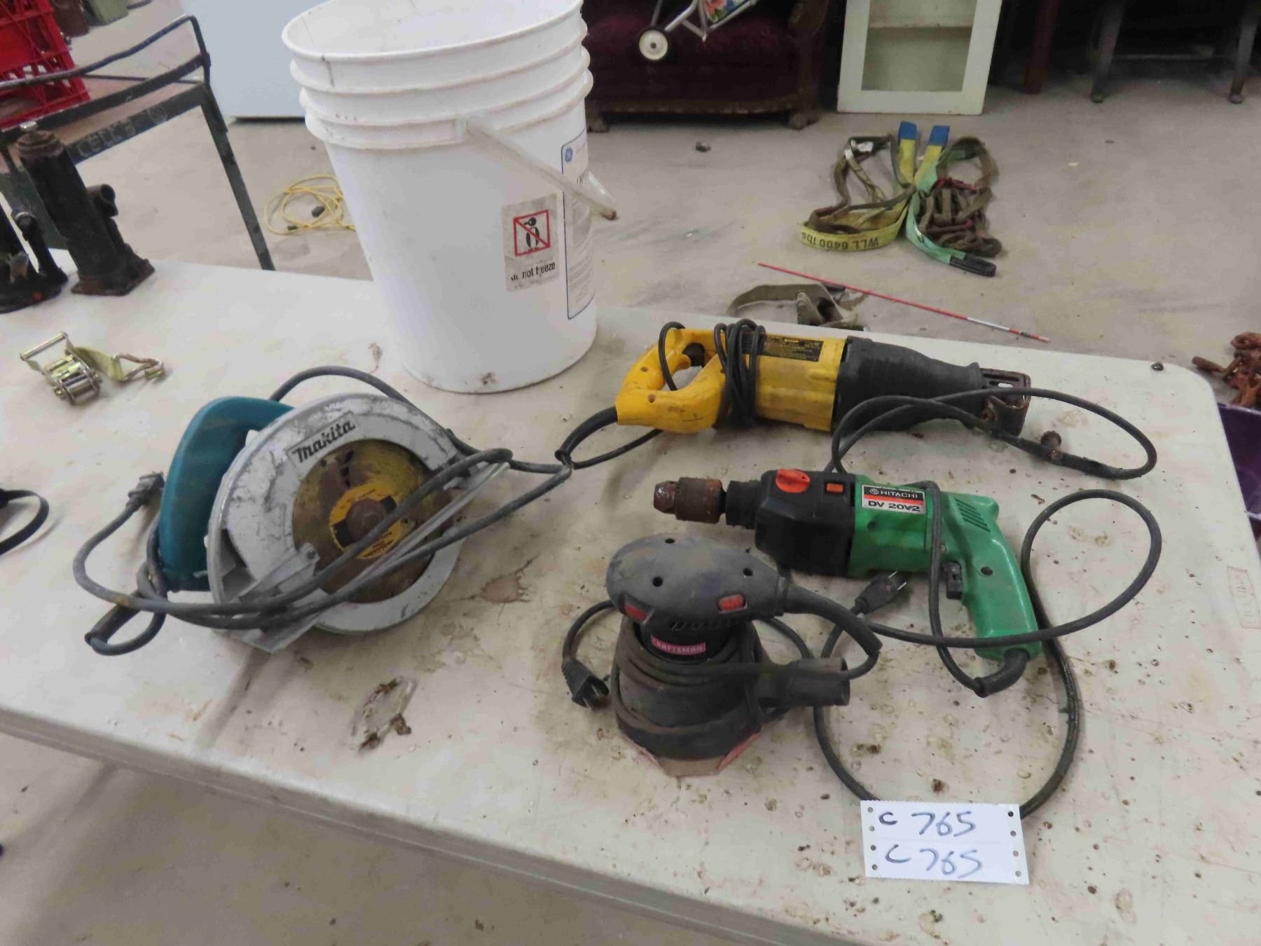 4 Power Tools: Makita Circular Saw, Dewalt Reciprocating Saw, Hitachi DV20V2 Hammer Drill, Craftsman Orbital Sander