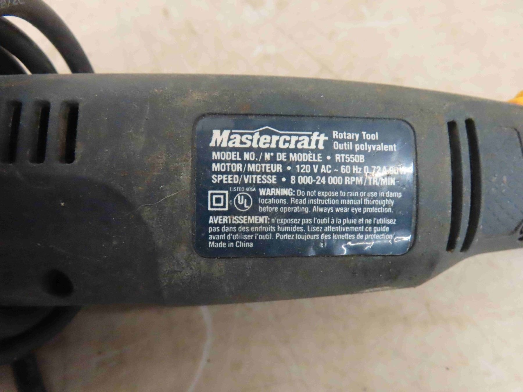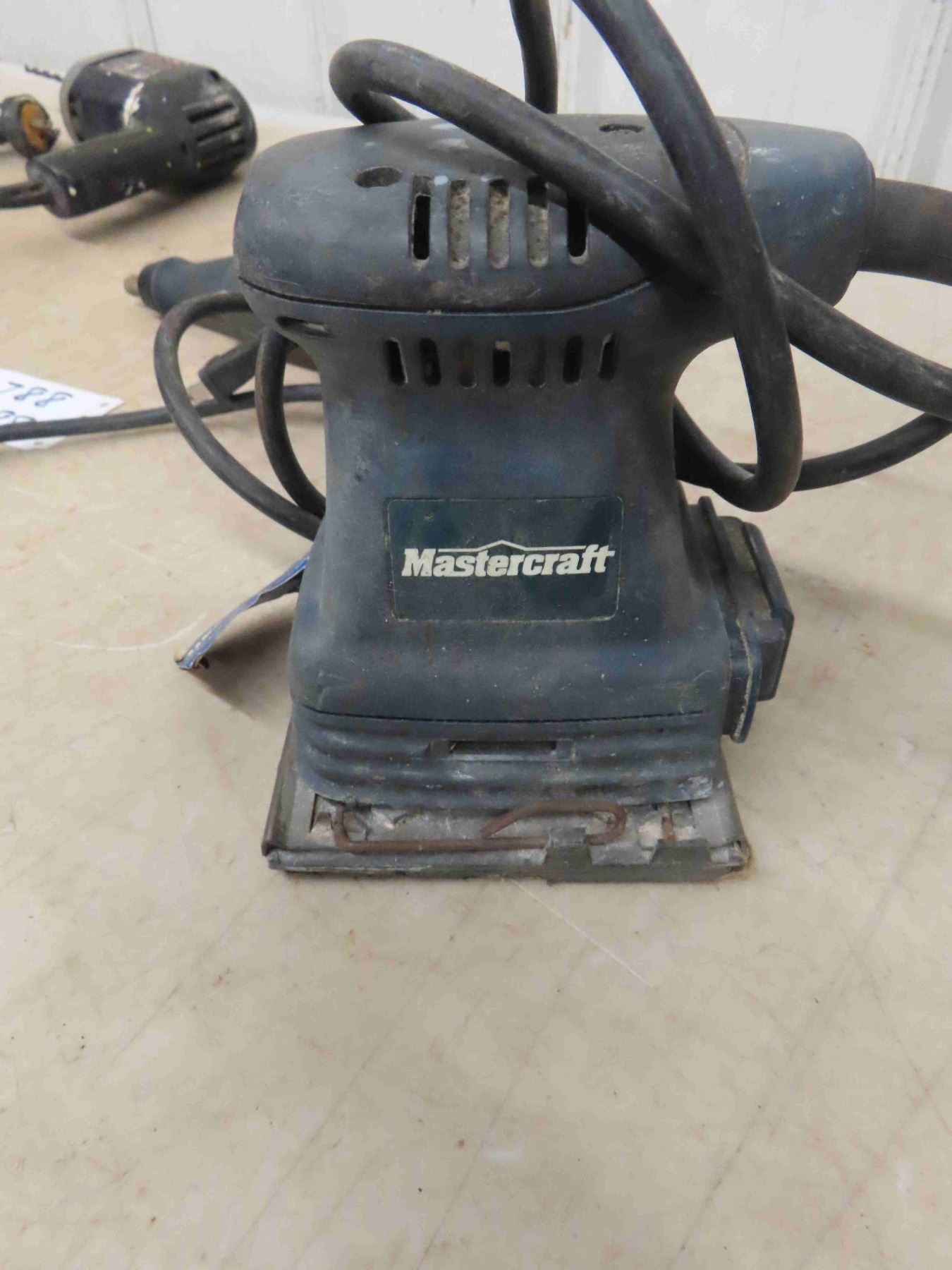 4 Power Tools: Mastercraft Sander, Rotary Tool, Black and Decker Drill,