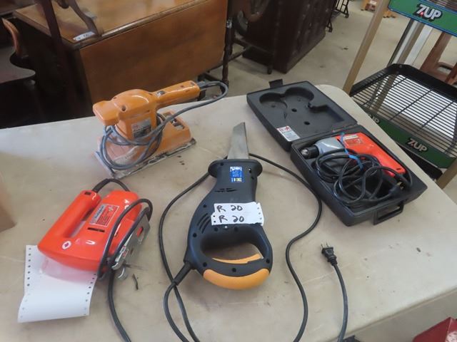 4 Power Tools; Reciprocating Saw, Jig Saw, Sander, Drill with Case