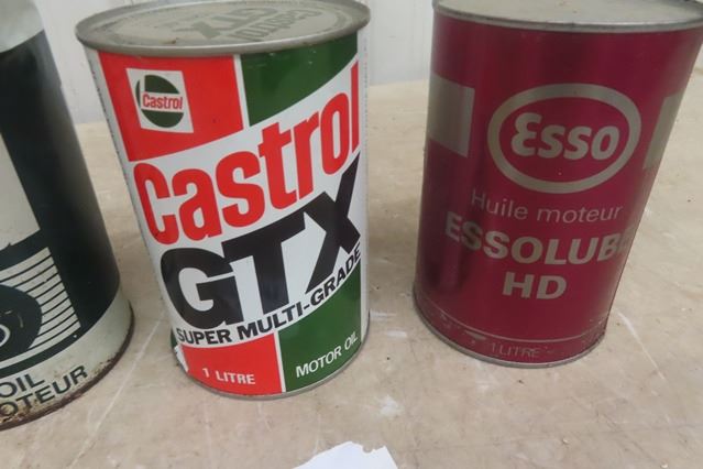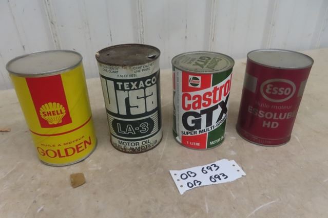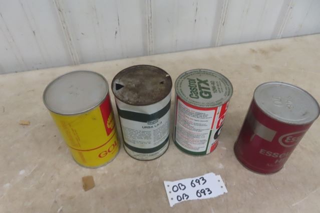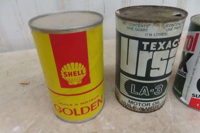 4 Quart Oil Cans ; Shell, Texaco, Castrol, Esso