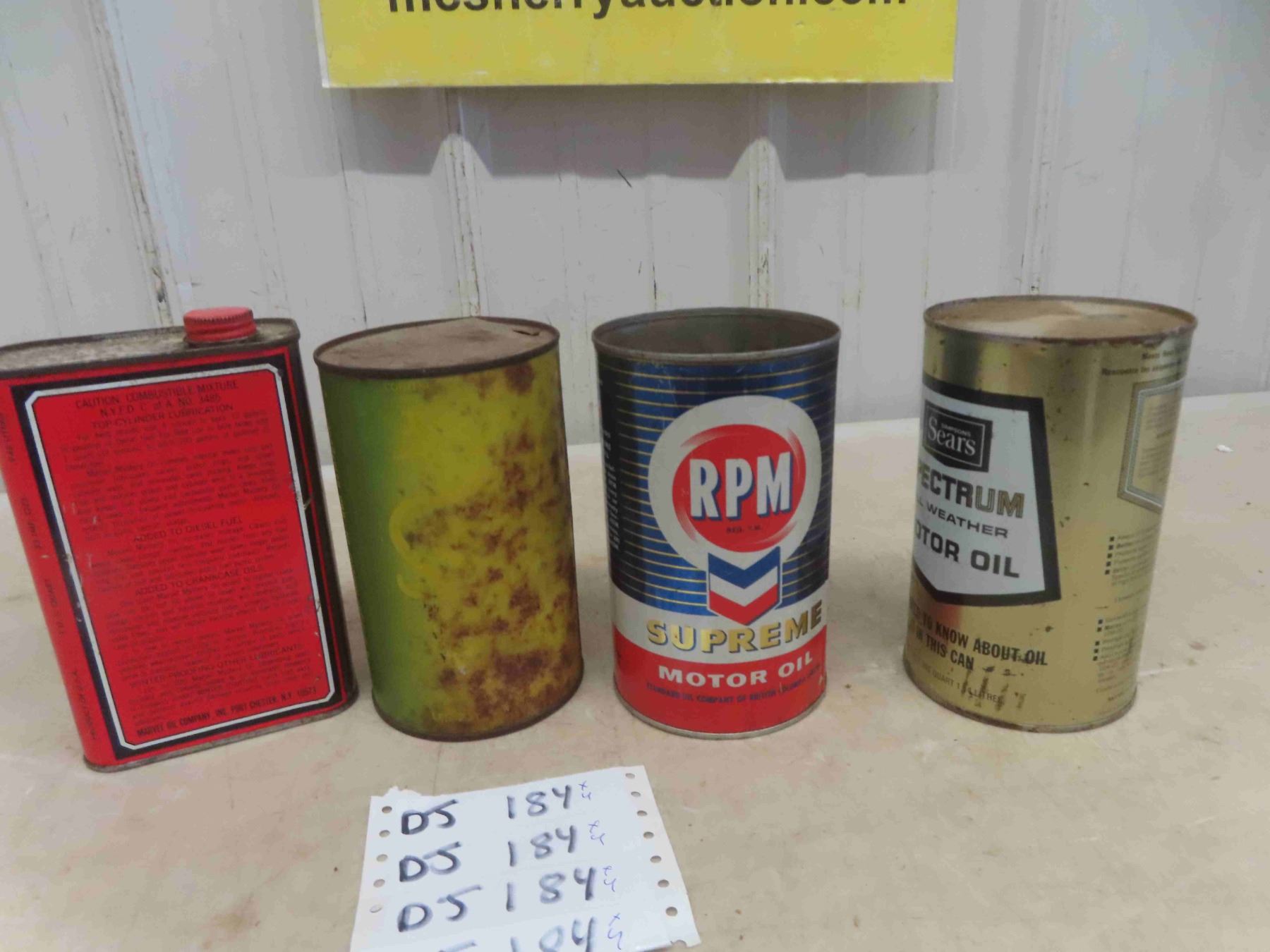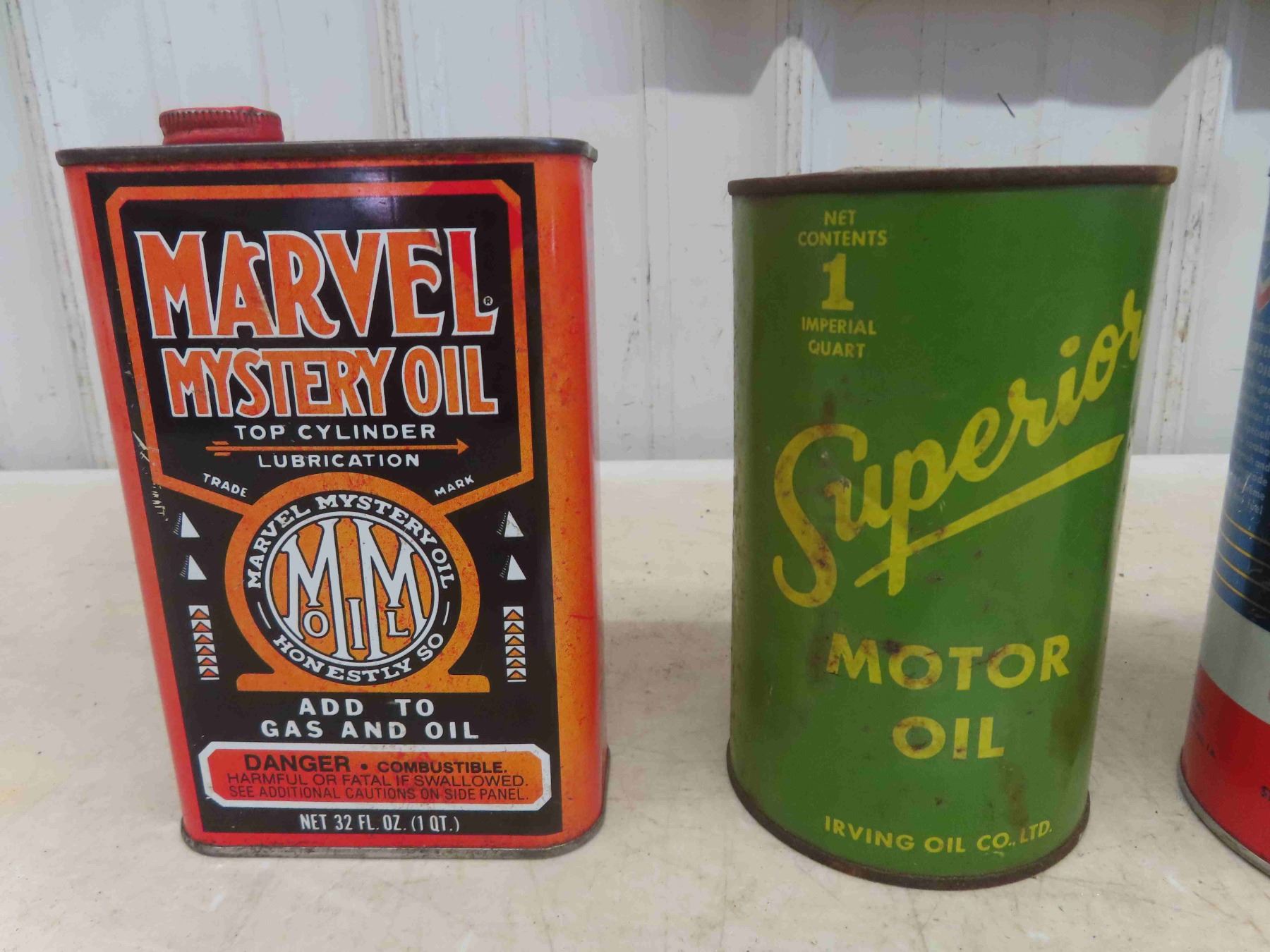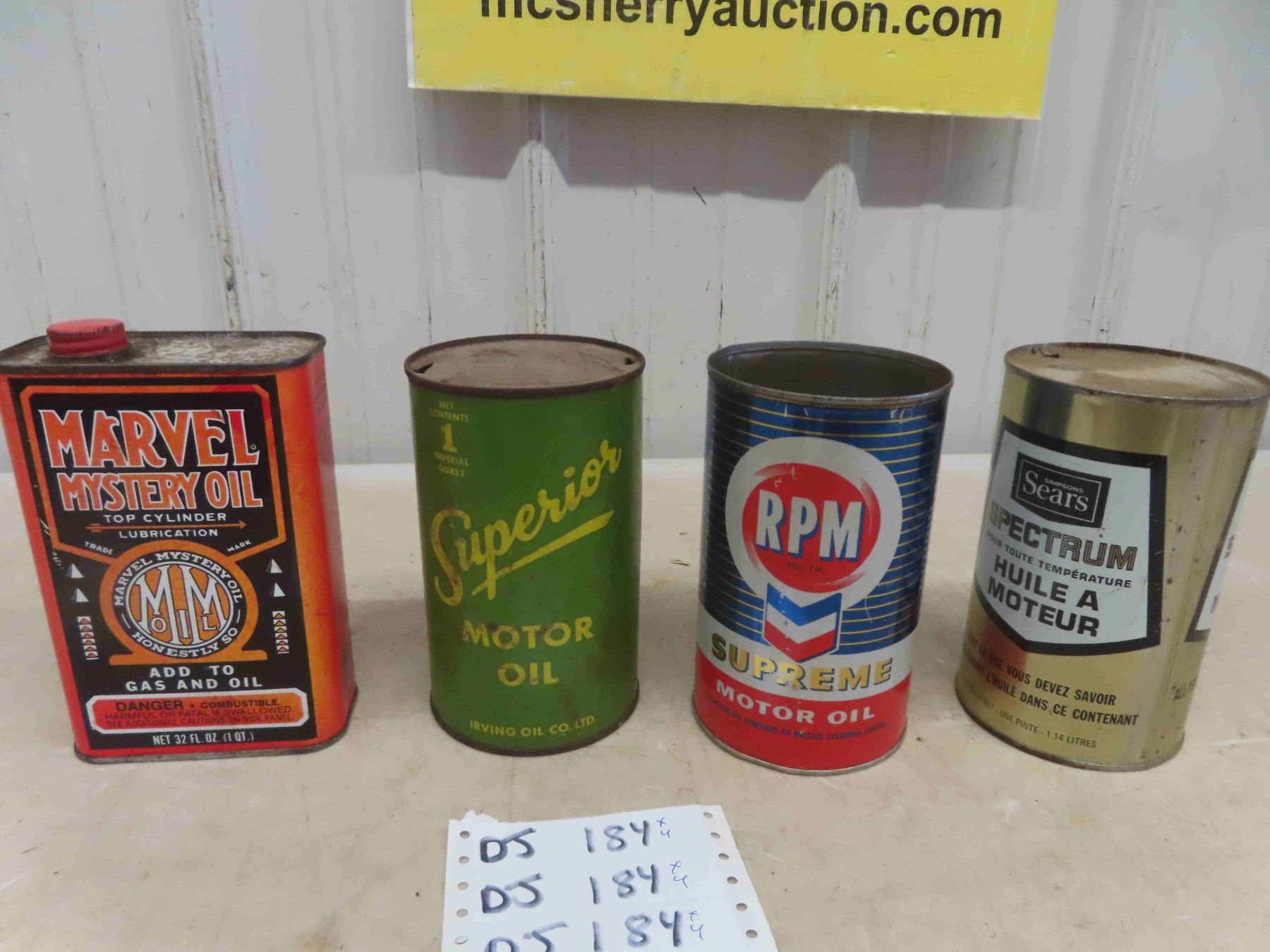 (4) Quartz Oil Cans - 1 Marvel Mystery Oil + 1 Superior + 1 RPM Supreme + Sears