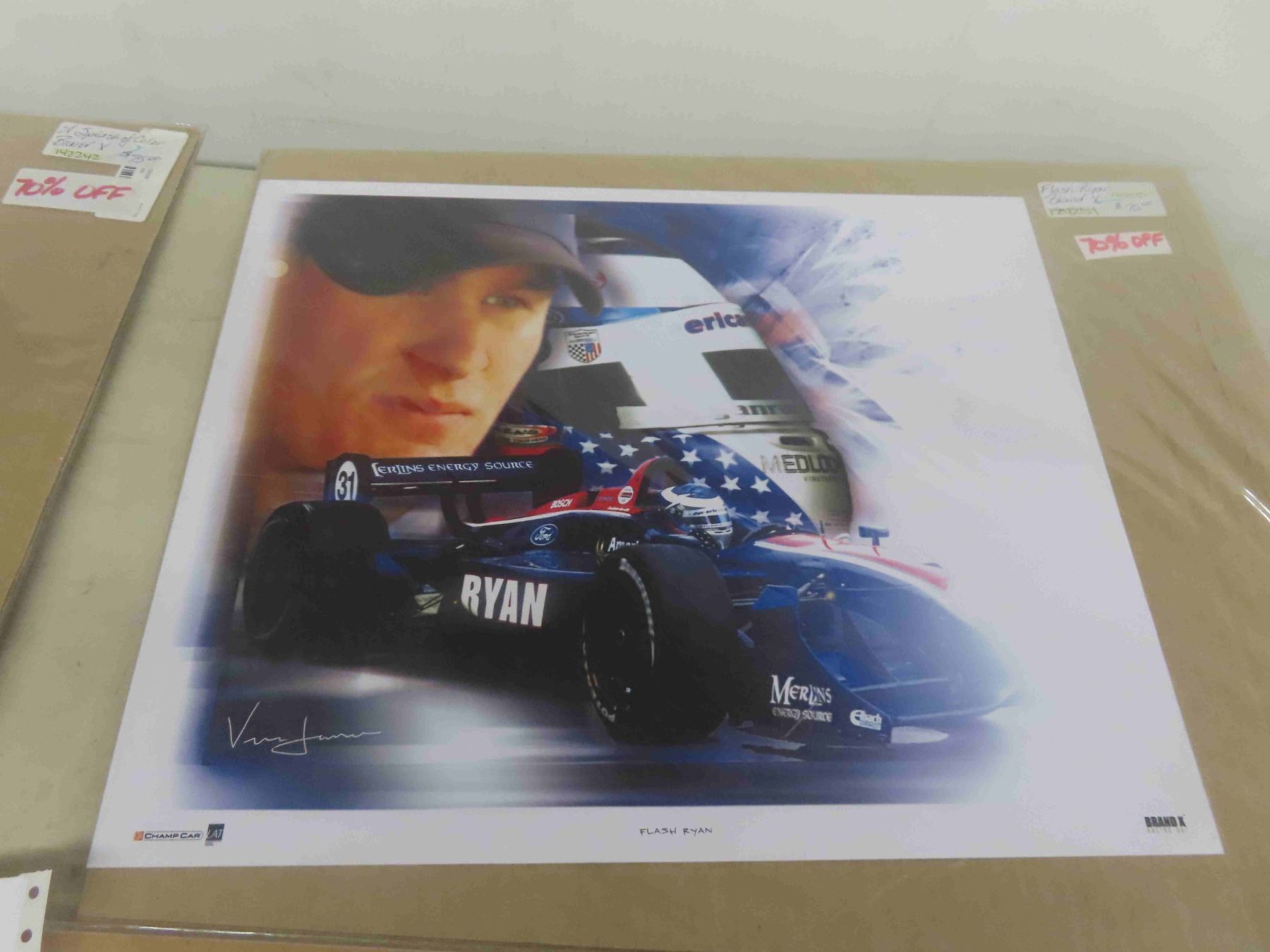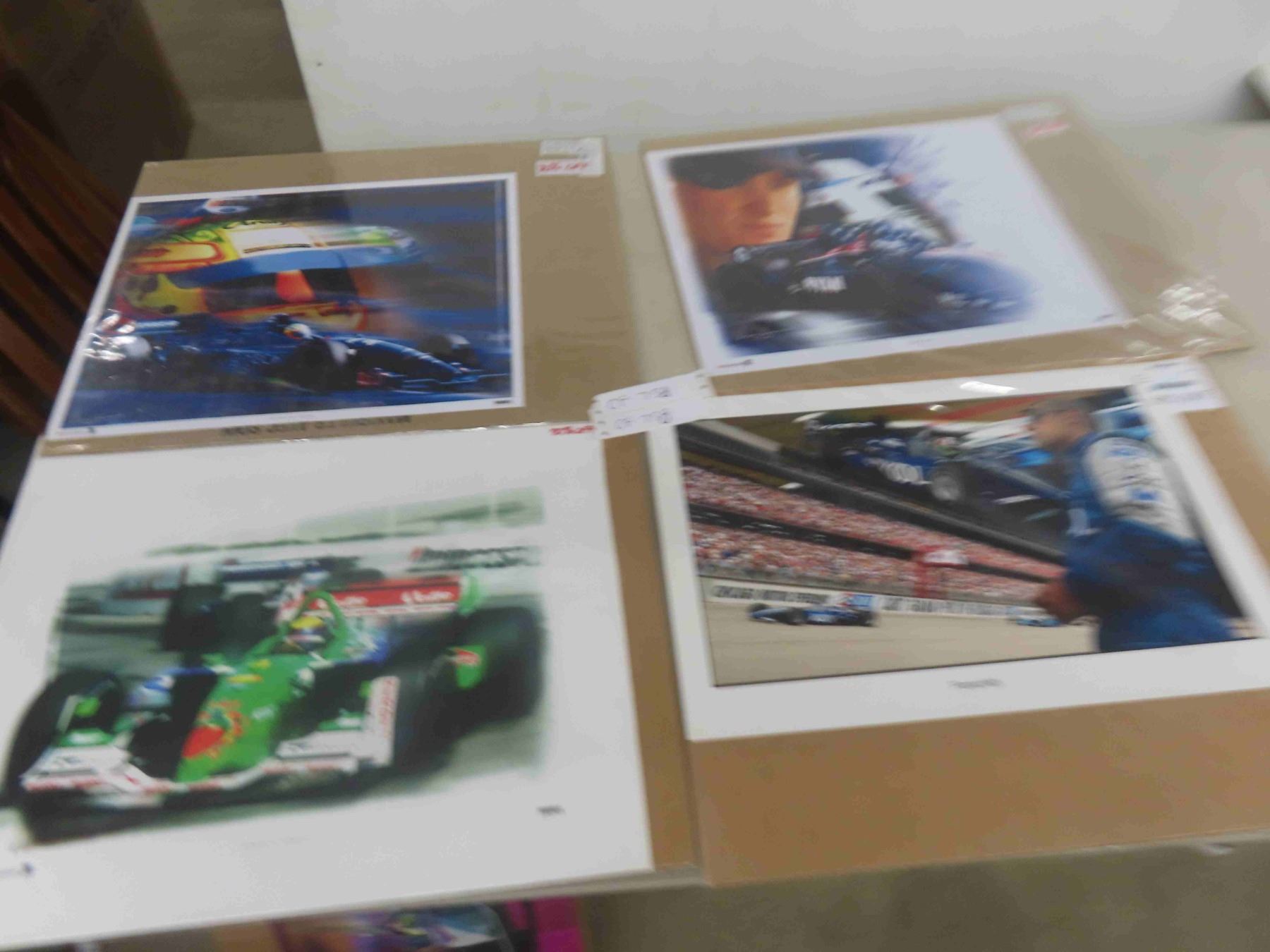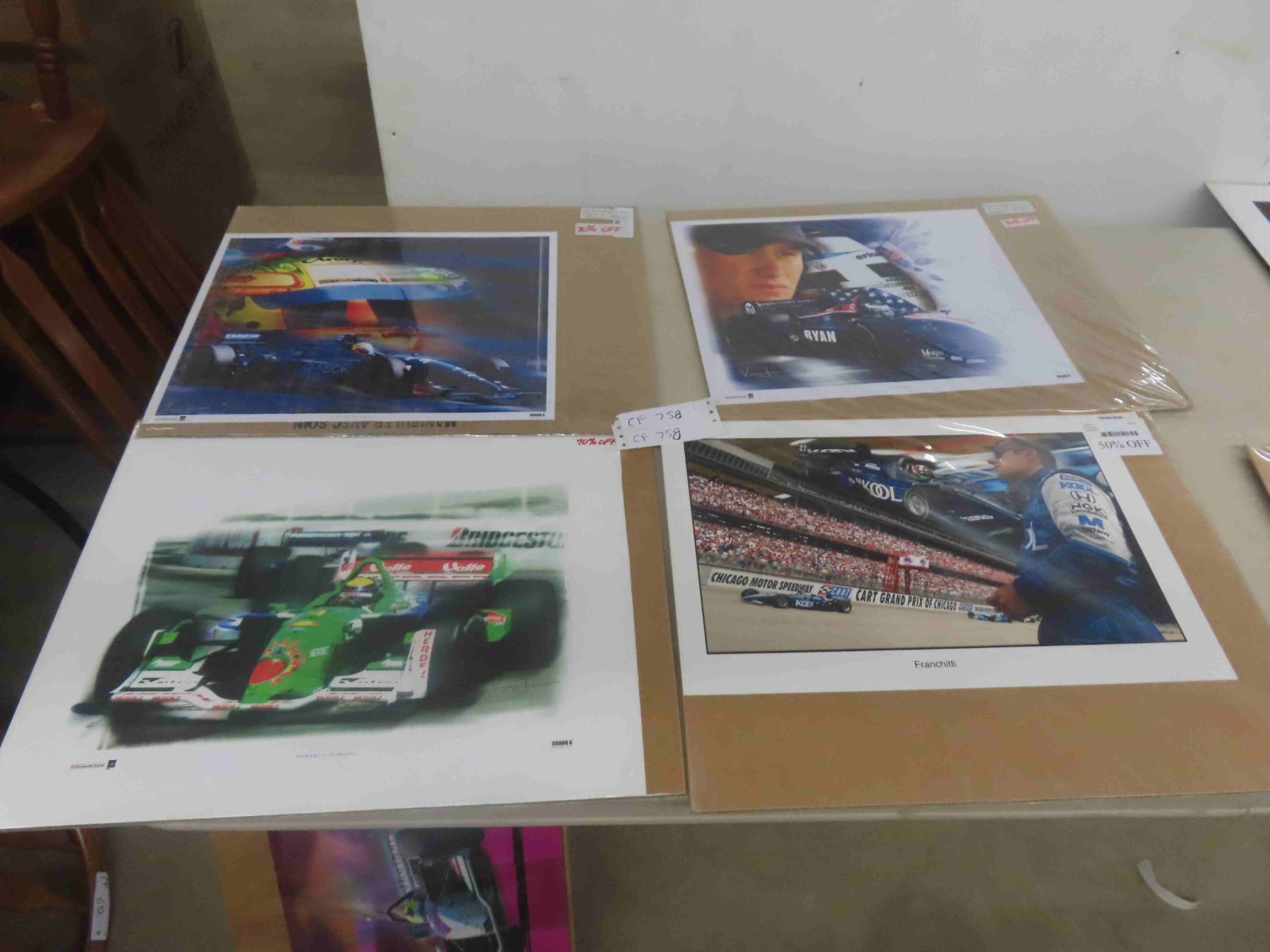 4 Race Car Pictures 12'' x 18'' " Roberto Moreno, Splash of Color, Flash Ryan & Others