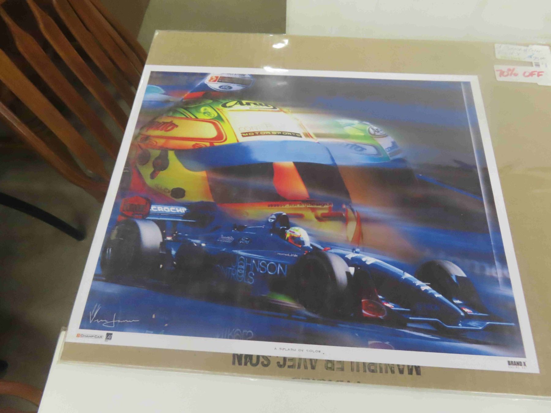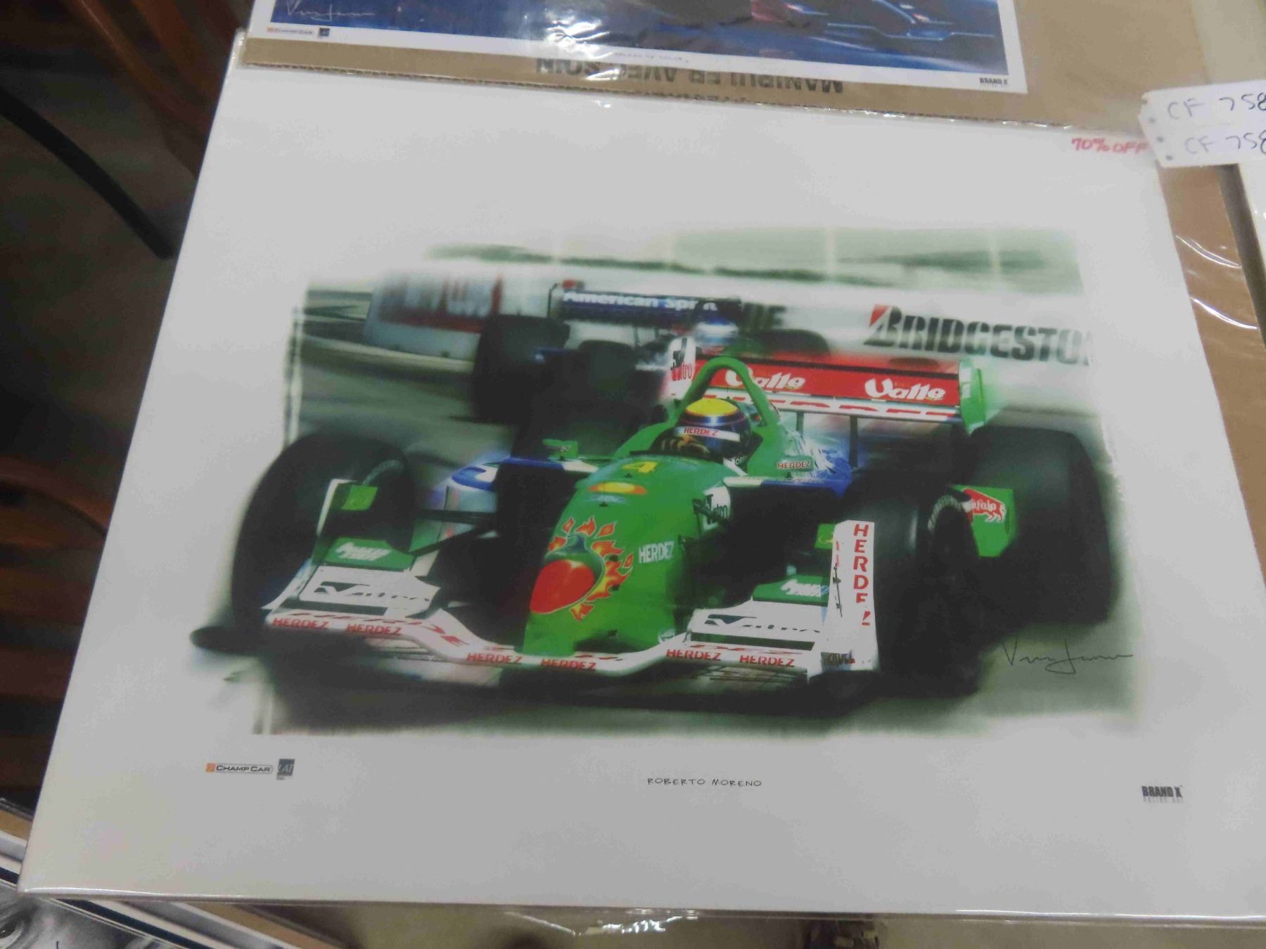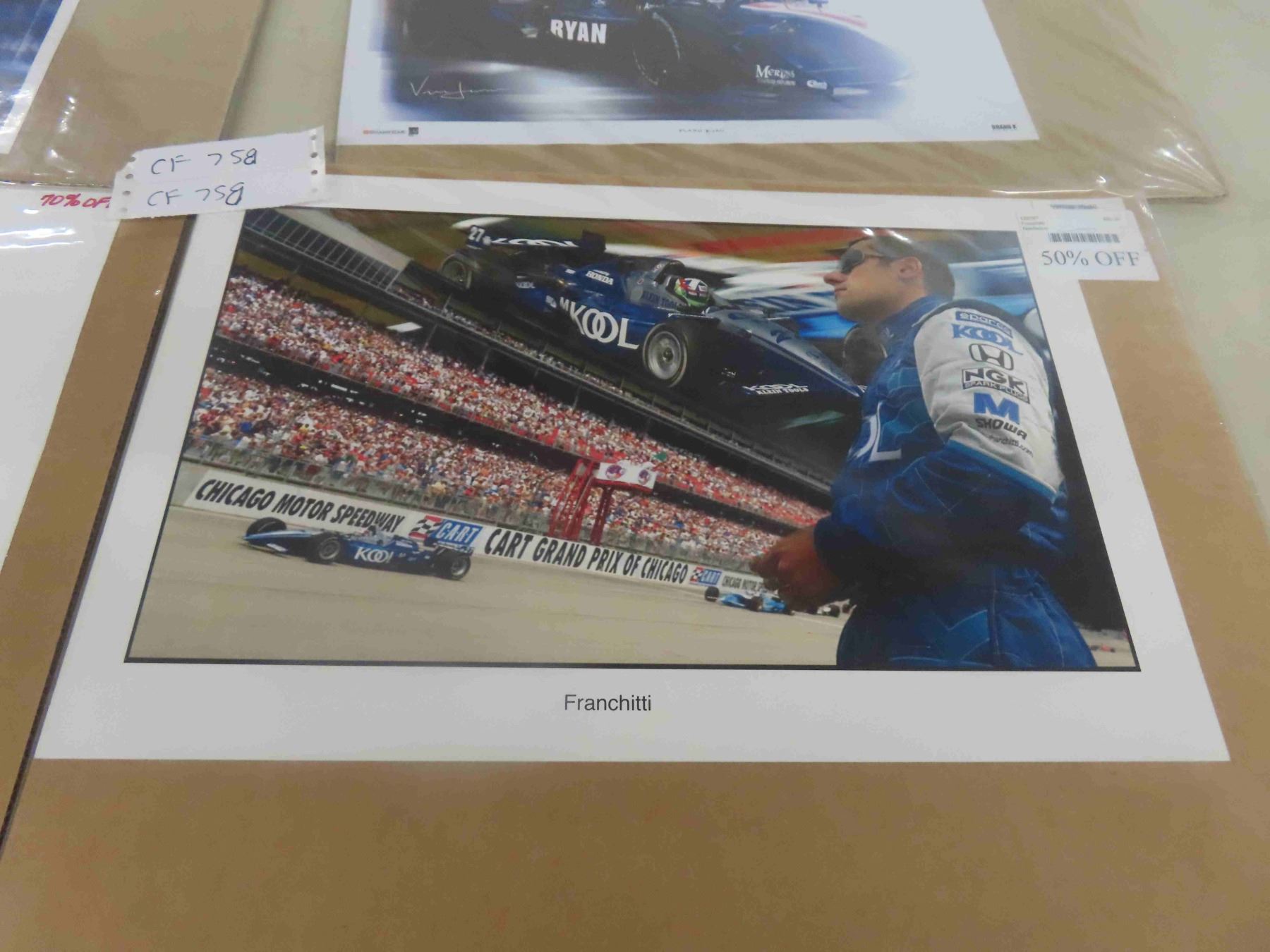 4 Race Car Pictures 12'' x 18'' " Roberto Moreno, Splash of Color, Flash Ryan & Others