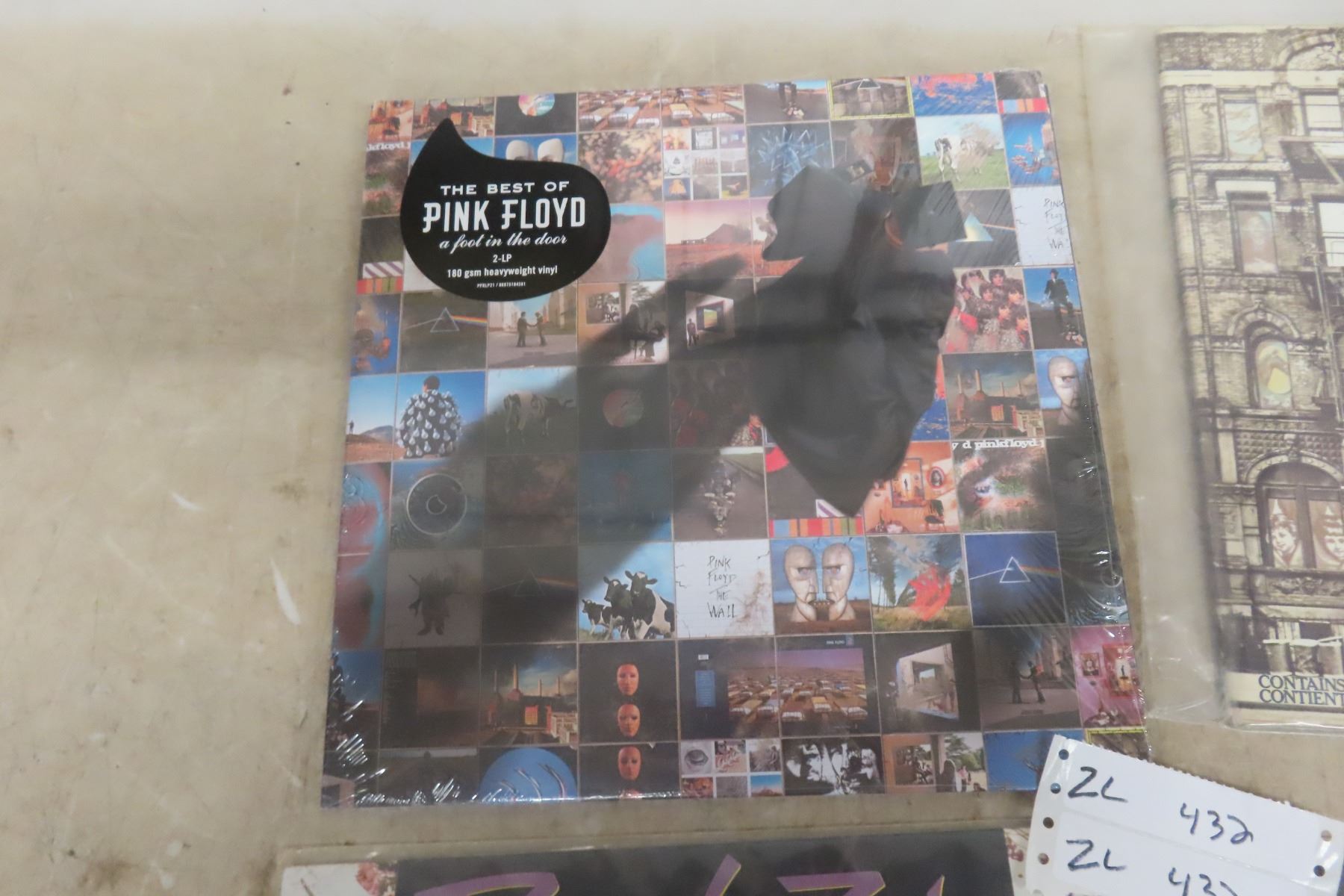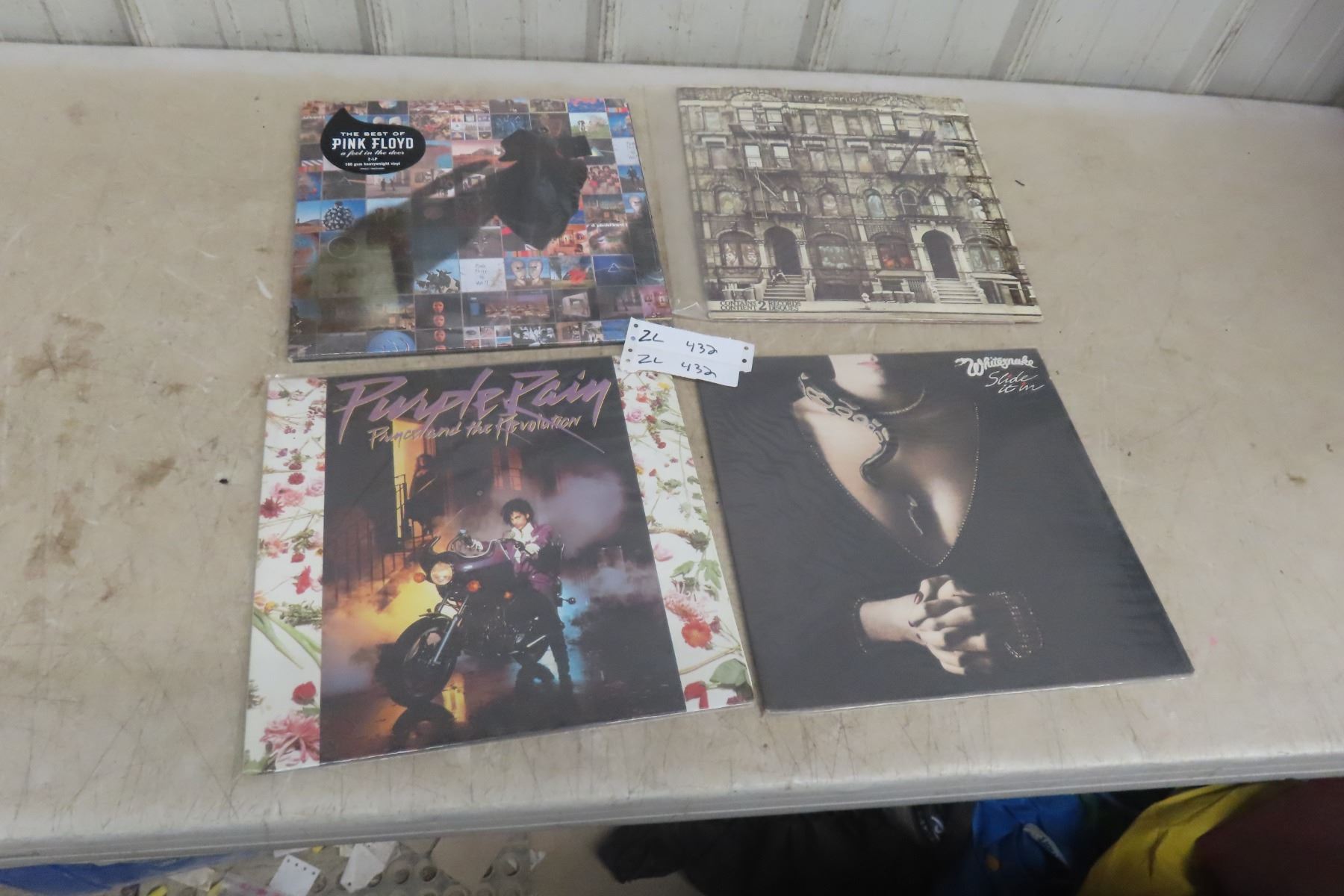 4 Rock and Roll Records: Purple Rain, Pink Floyd, Led Zepplin, White Snake.