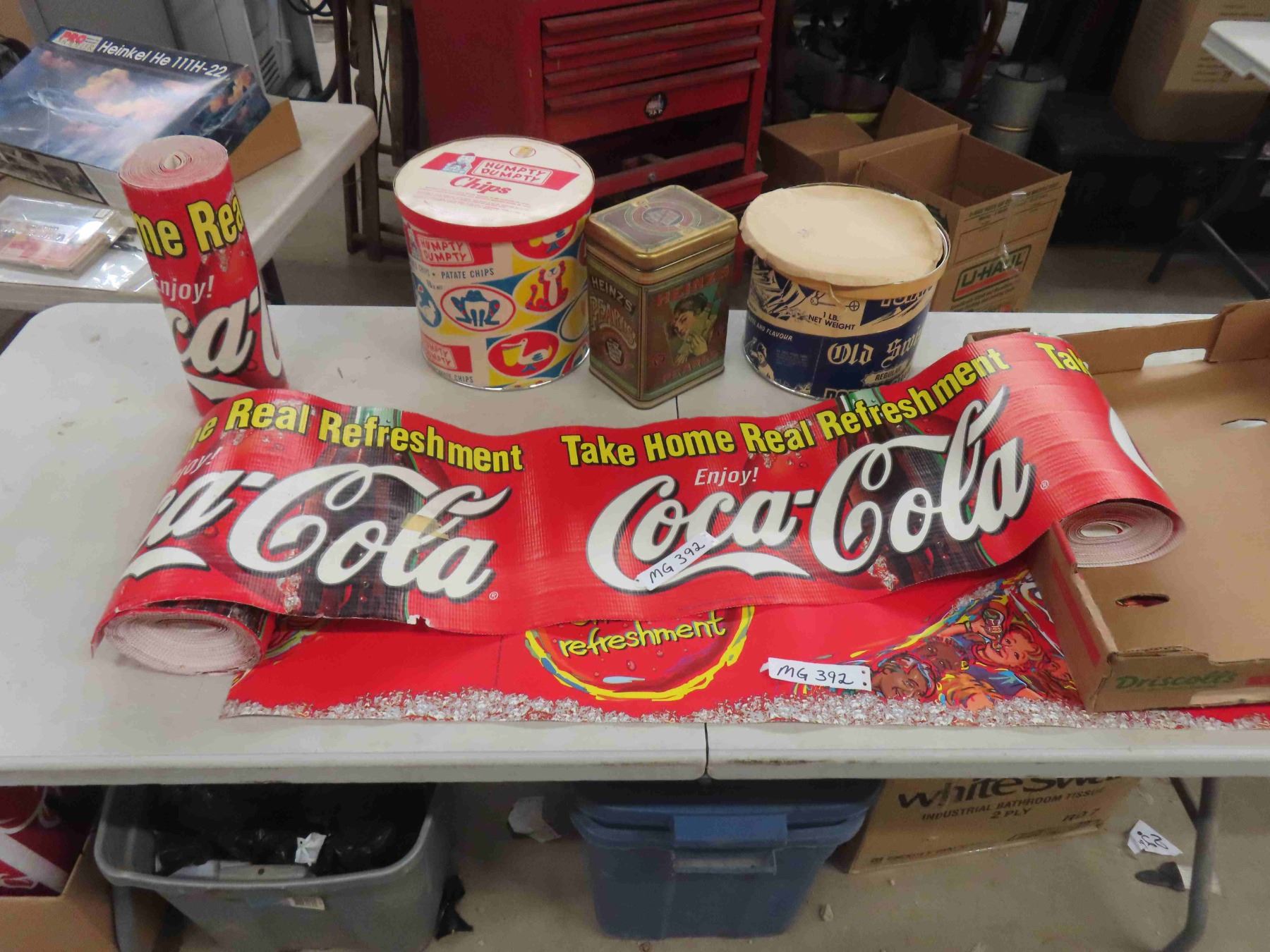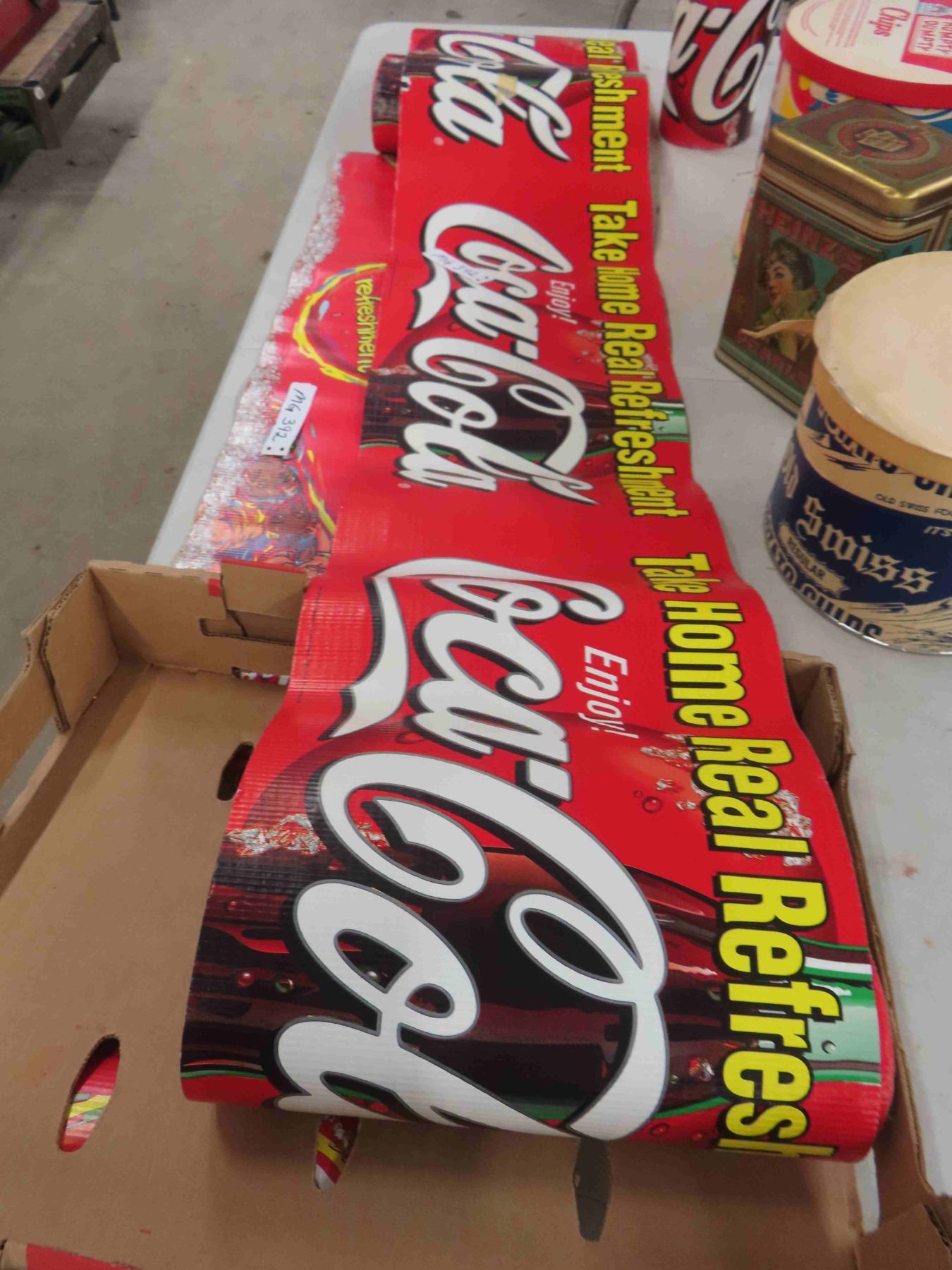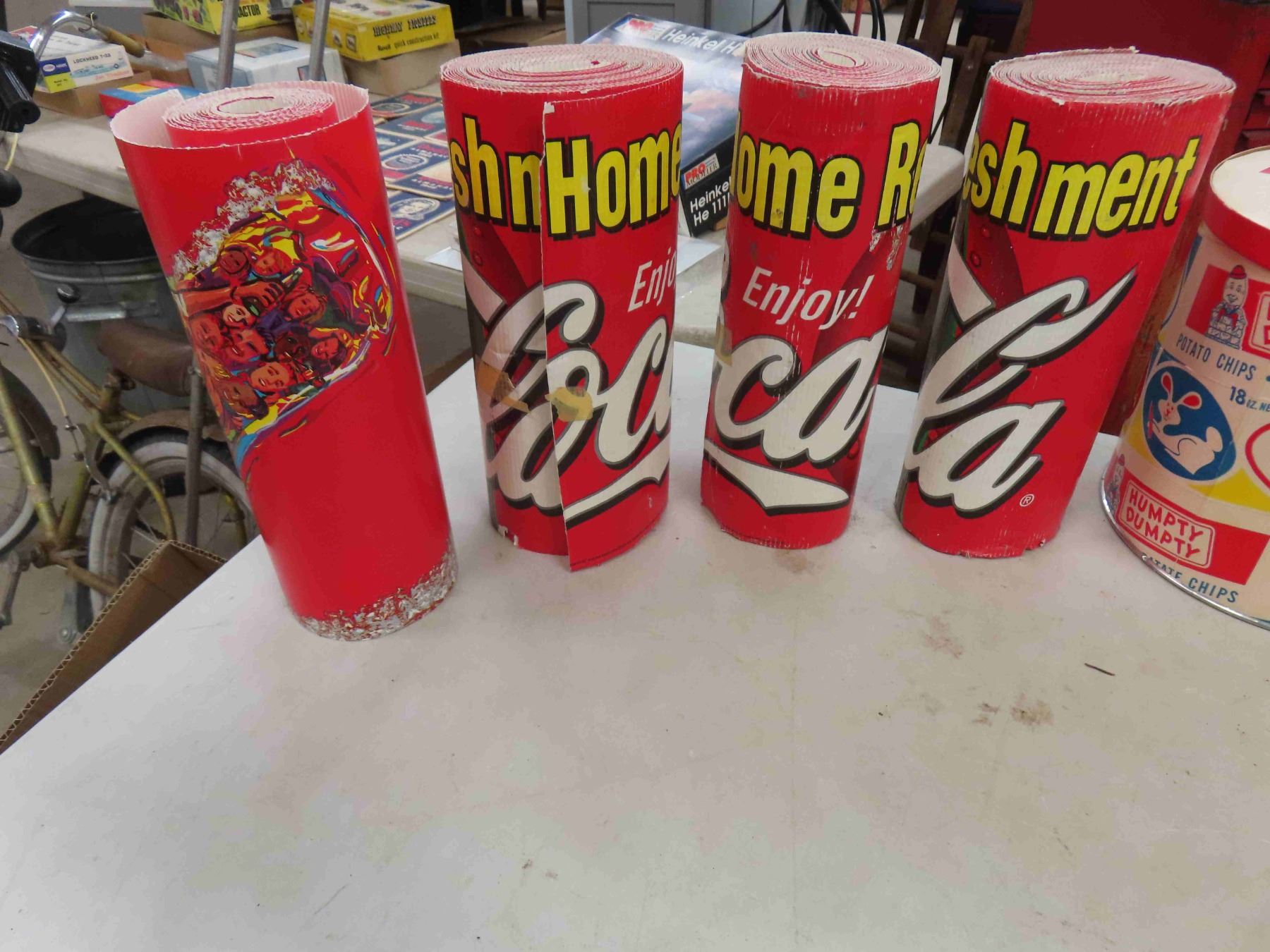 4 Rolls of CocaCola Corrugated Cardboard Banners 12'' wide , Vintage Old Swiss Chip Cardboard Container, Humpty Dumpty Container, Plus