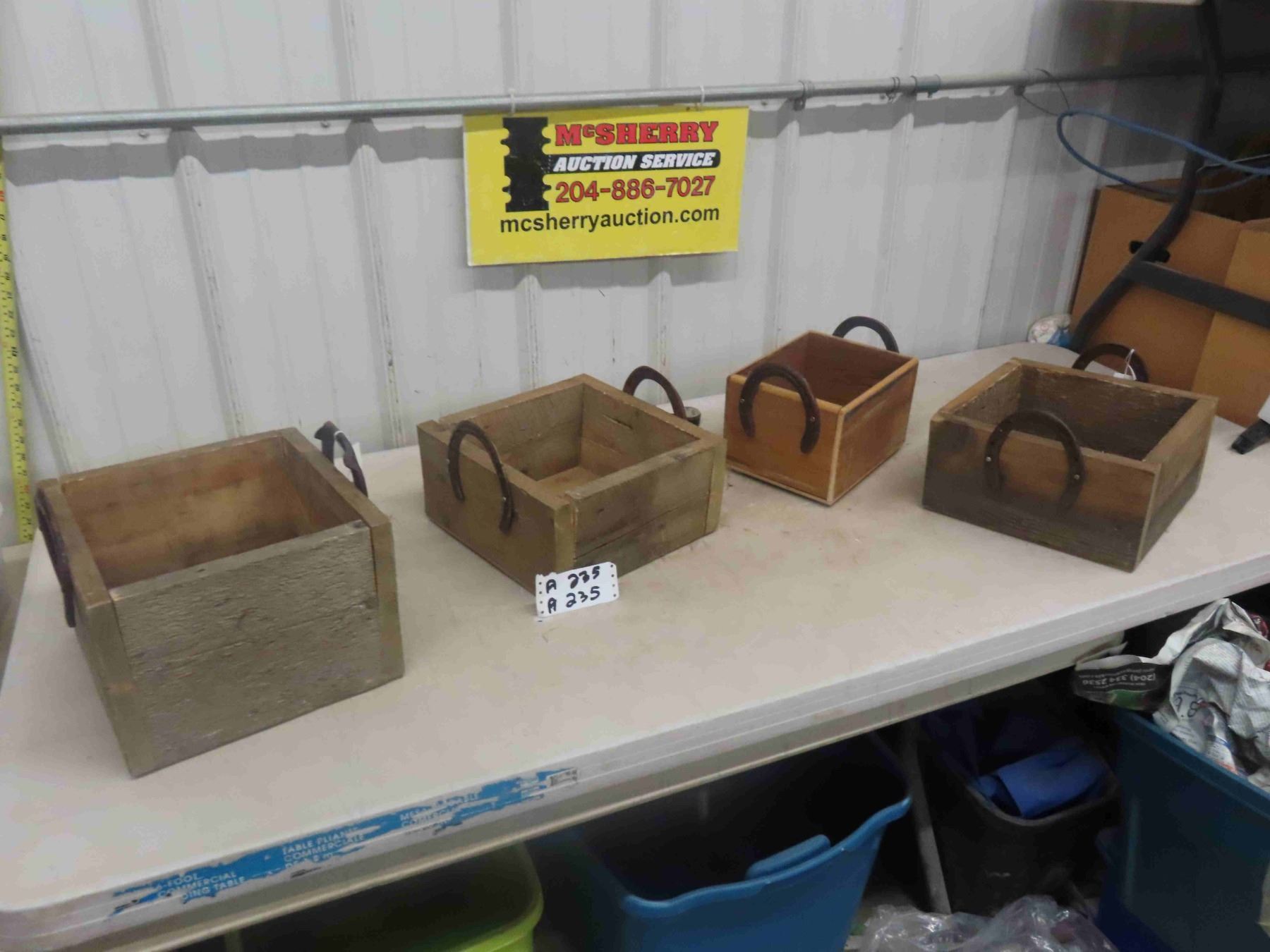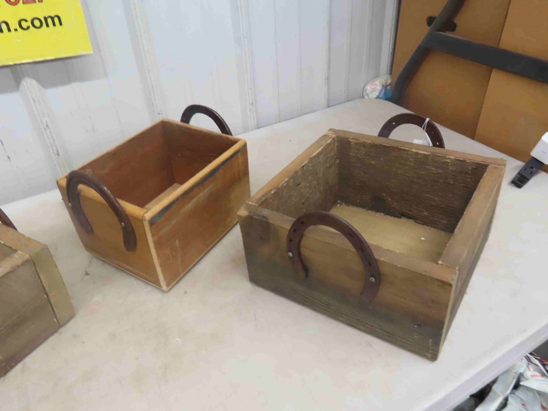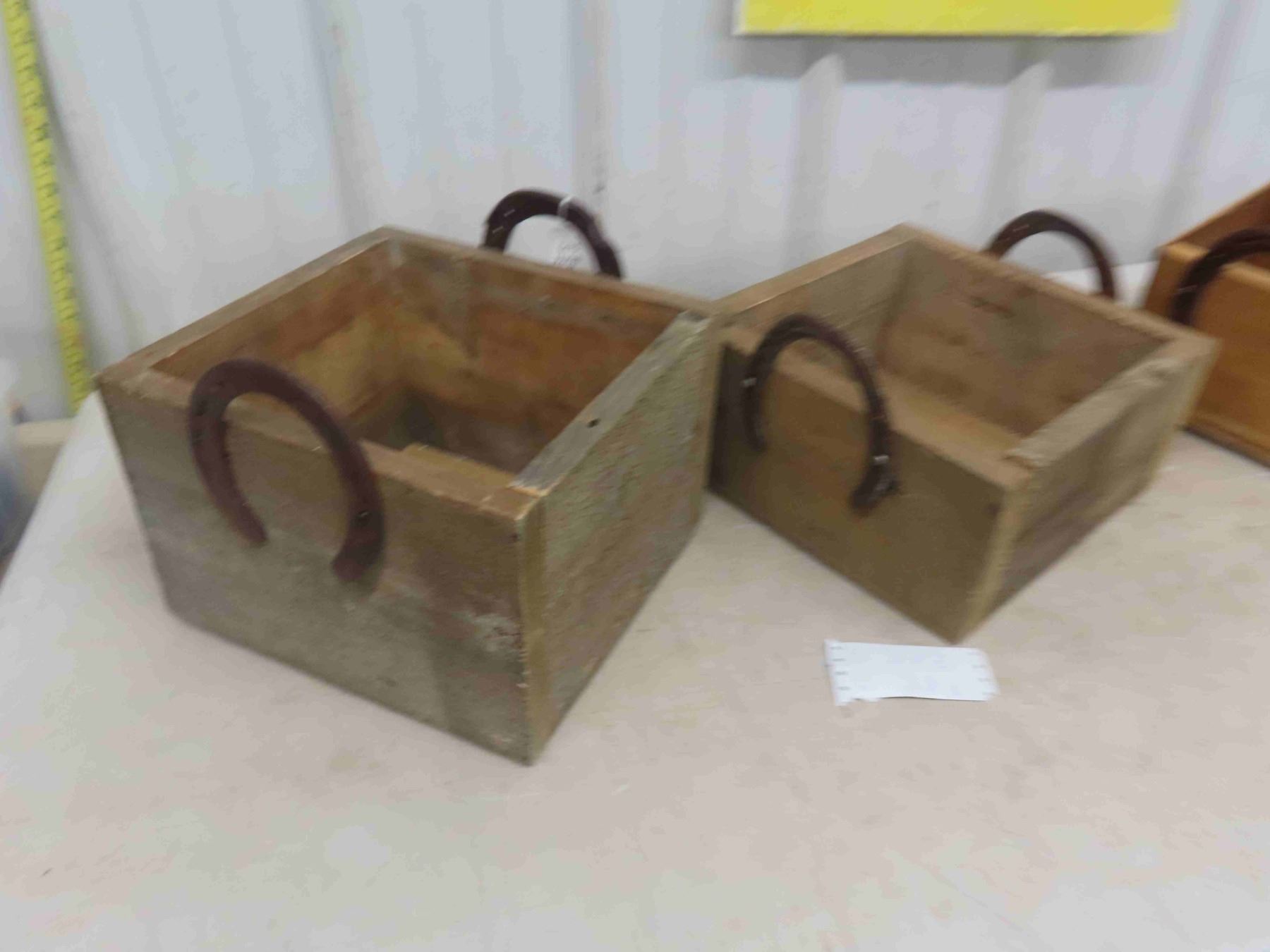 4 Rustic Organizers with Horse Shoe Handles - Approximately 8" x 11" x 11"