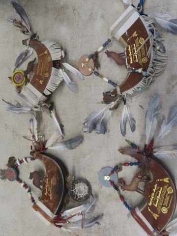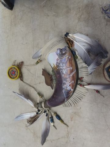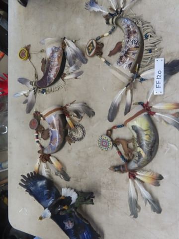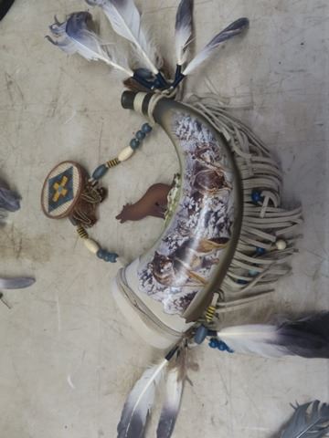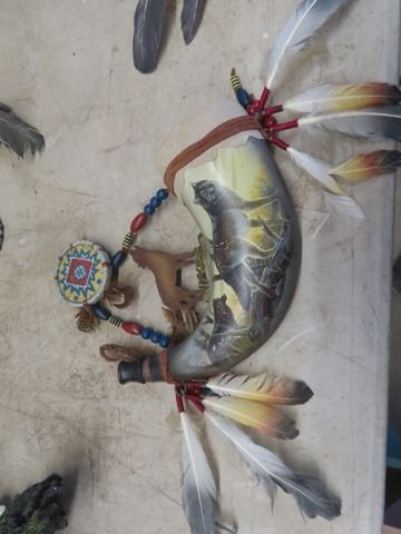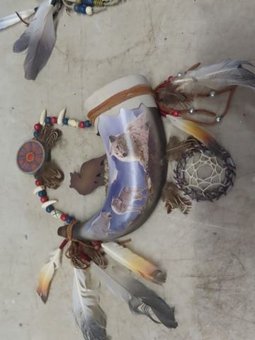 4 Sacred Guardians Powder Horn Indigenous Art + Eagle Statue