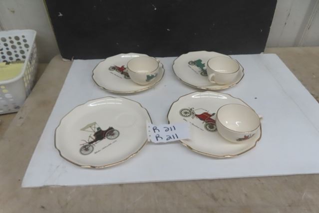 4 Sandwich Plates + 3 Tea Cups with Autos - China