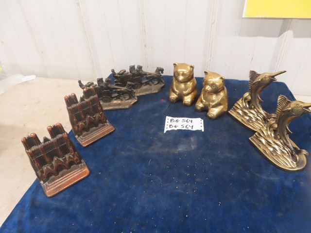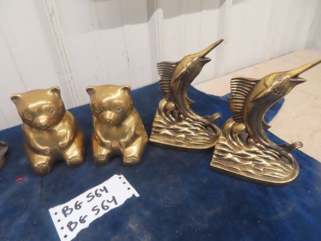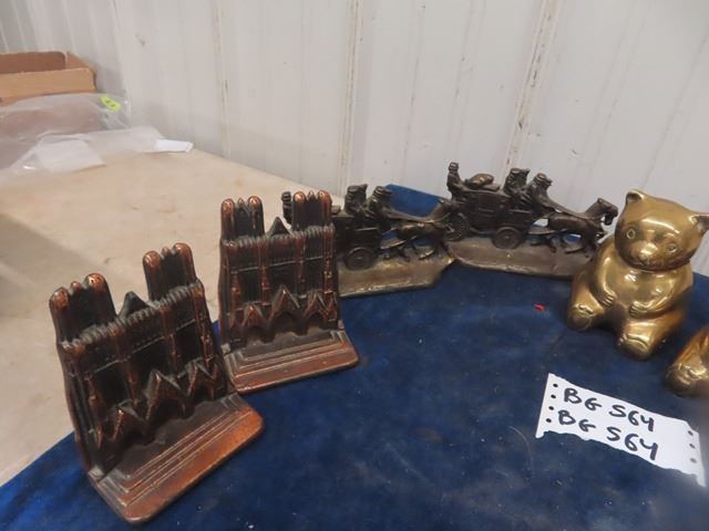 4 Sets of Vintage Brass + Glass Cast Iron Bookends Teddy Bears are Birks Brass
