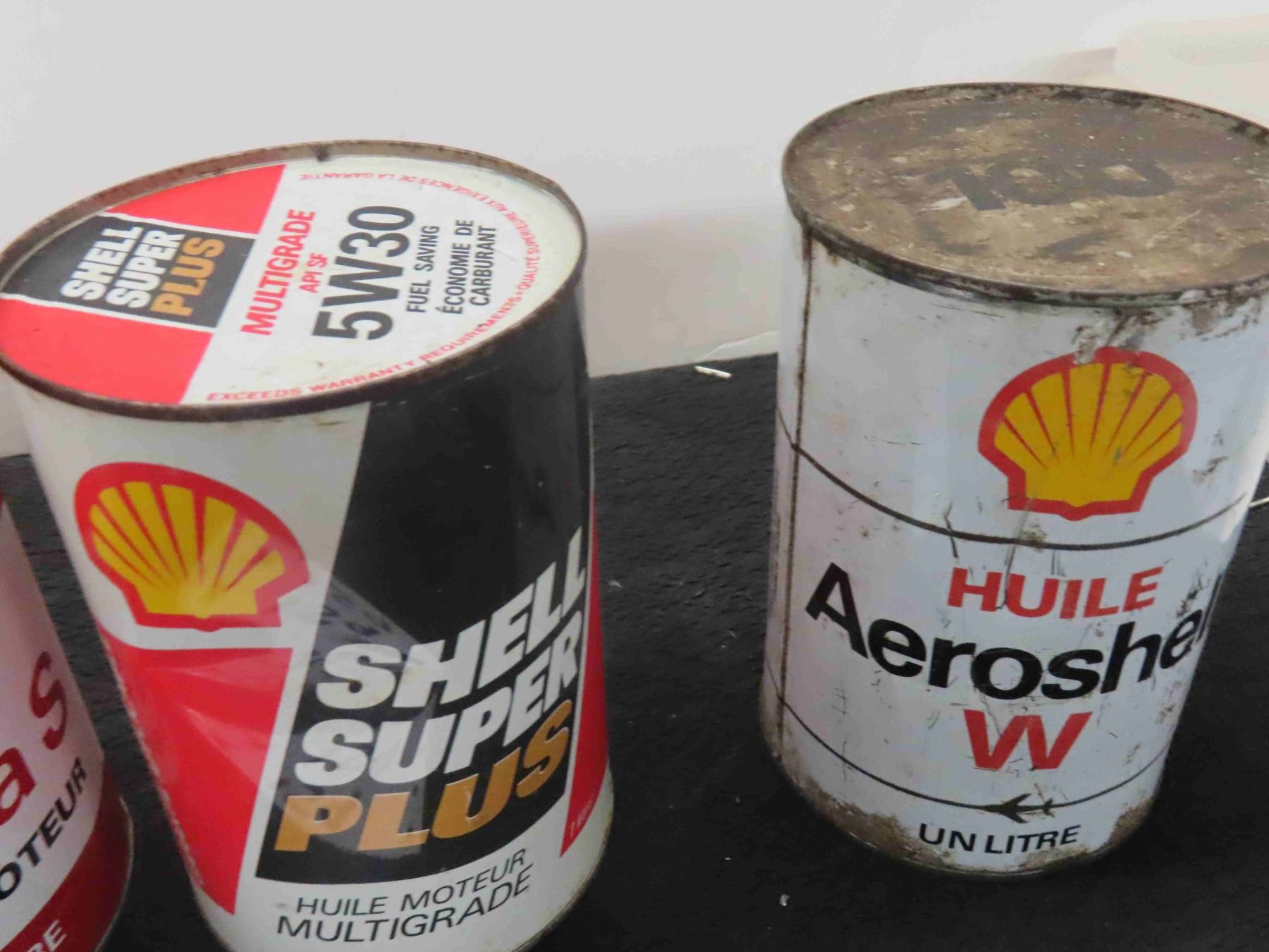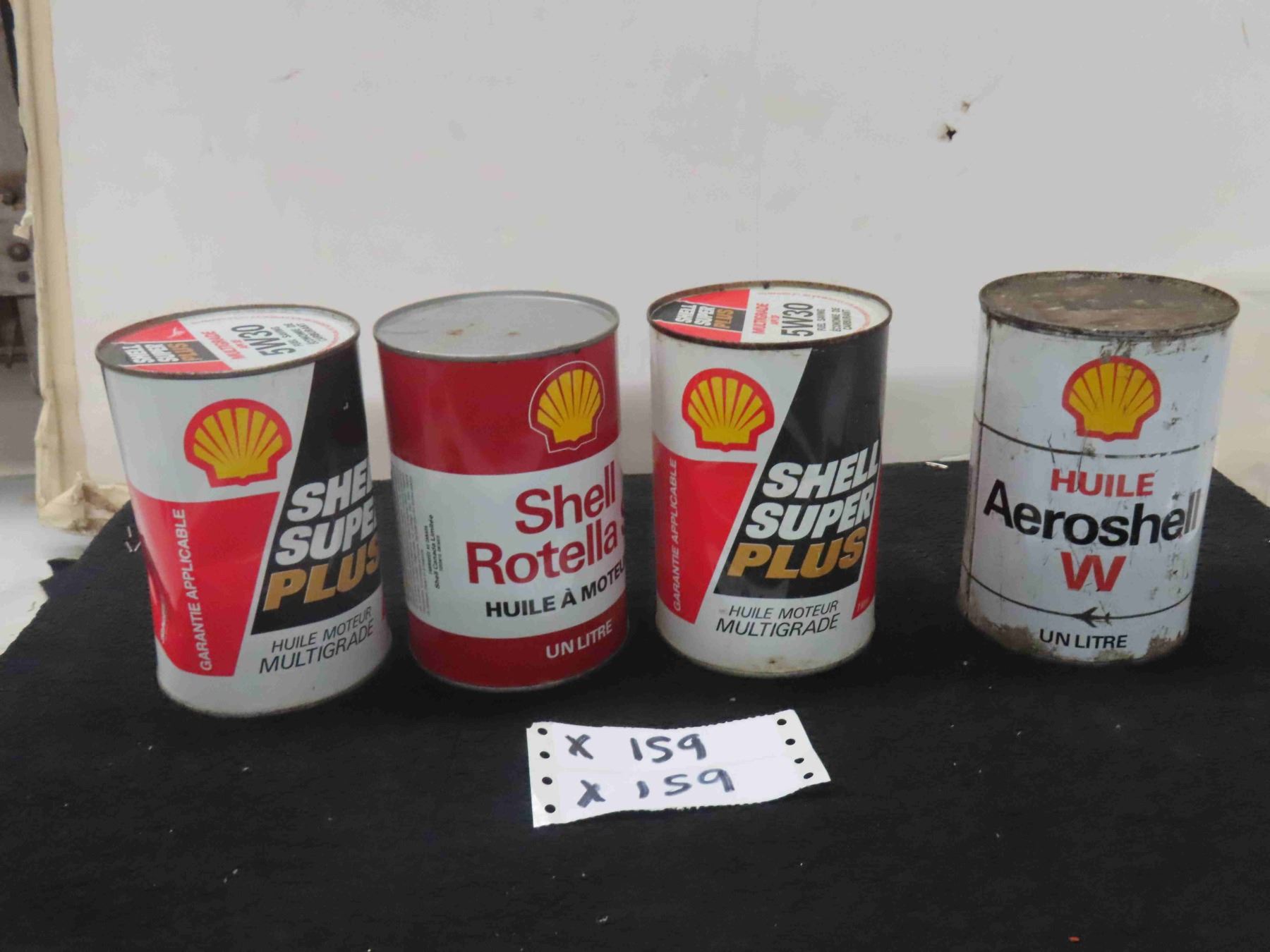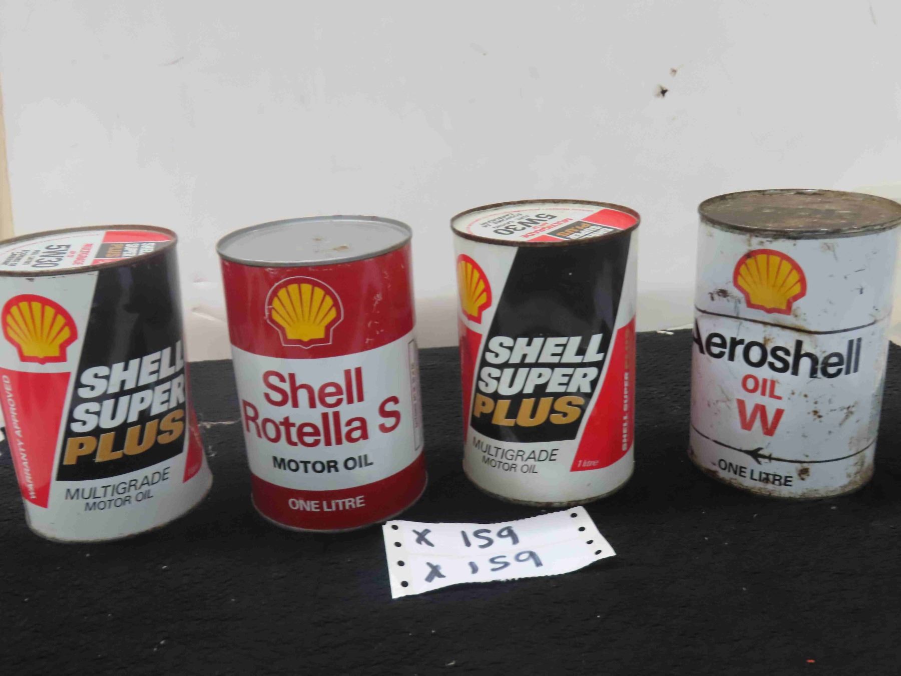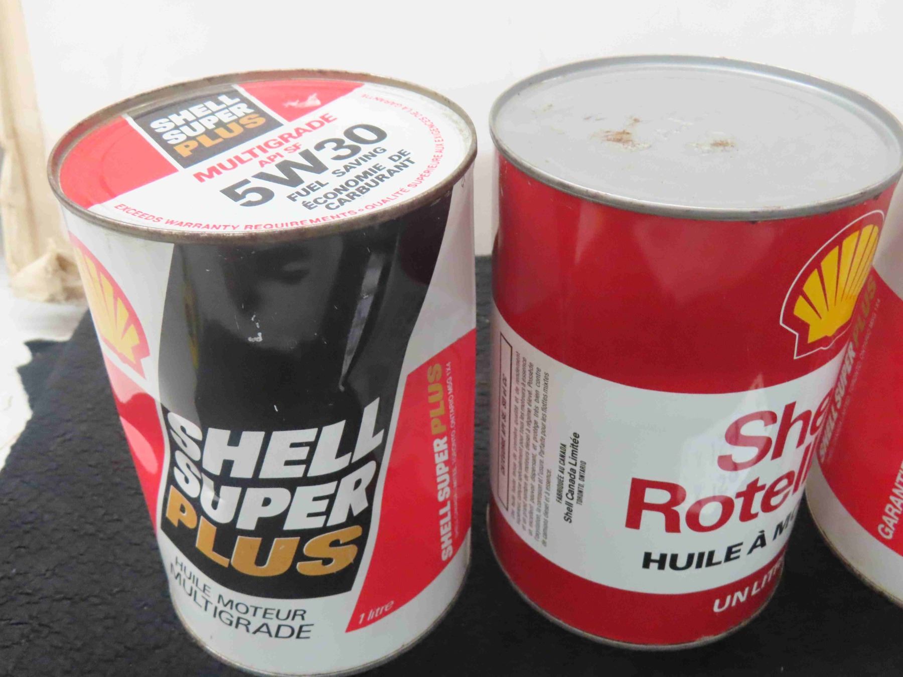 (4) Shell Quartz Oil Cans - (2) Super Plus Multigrade (1) Rotella S (1) Aeroshell