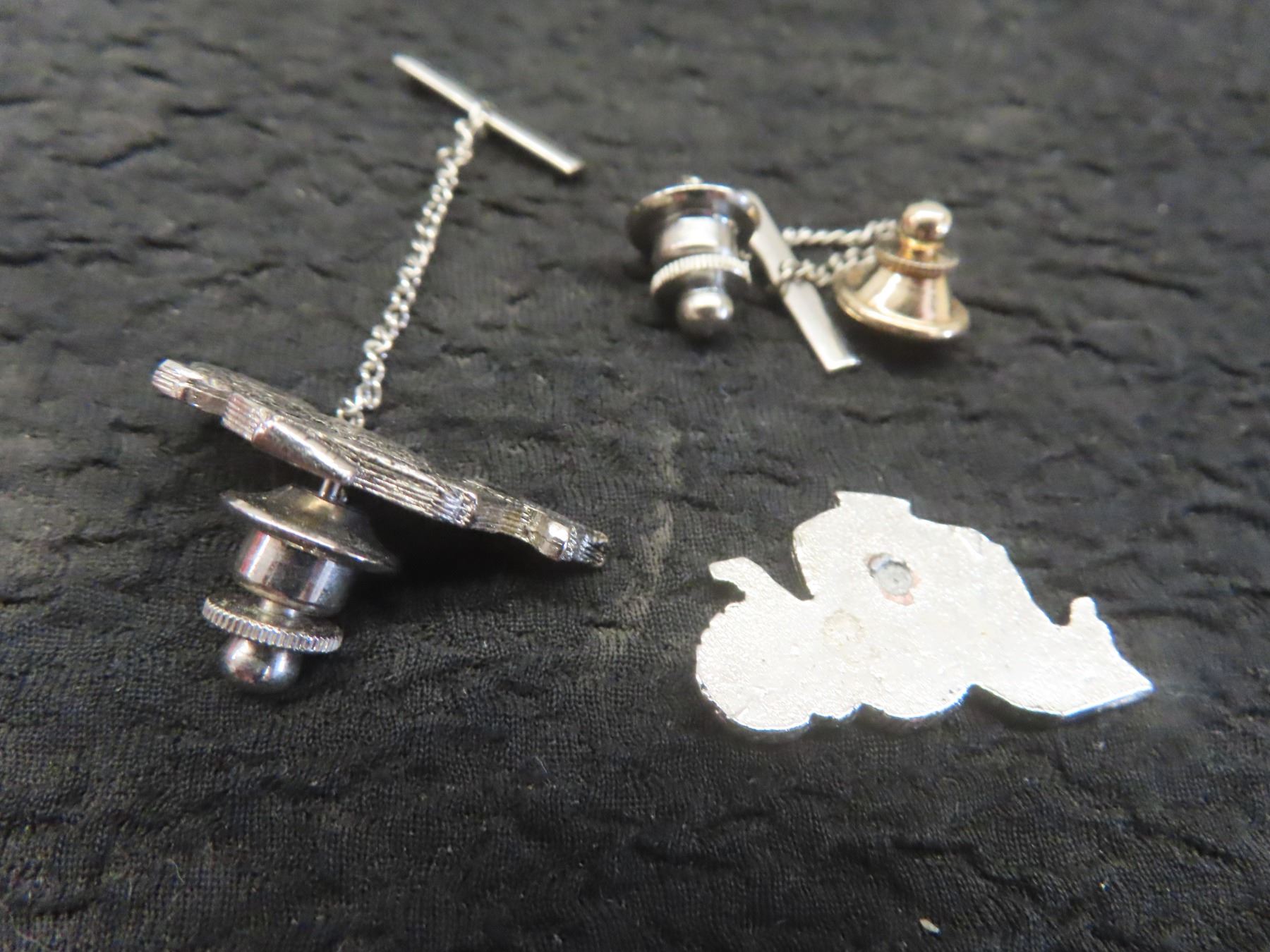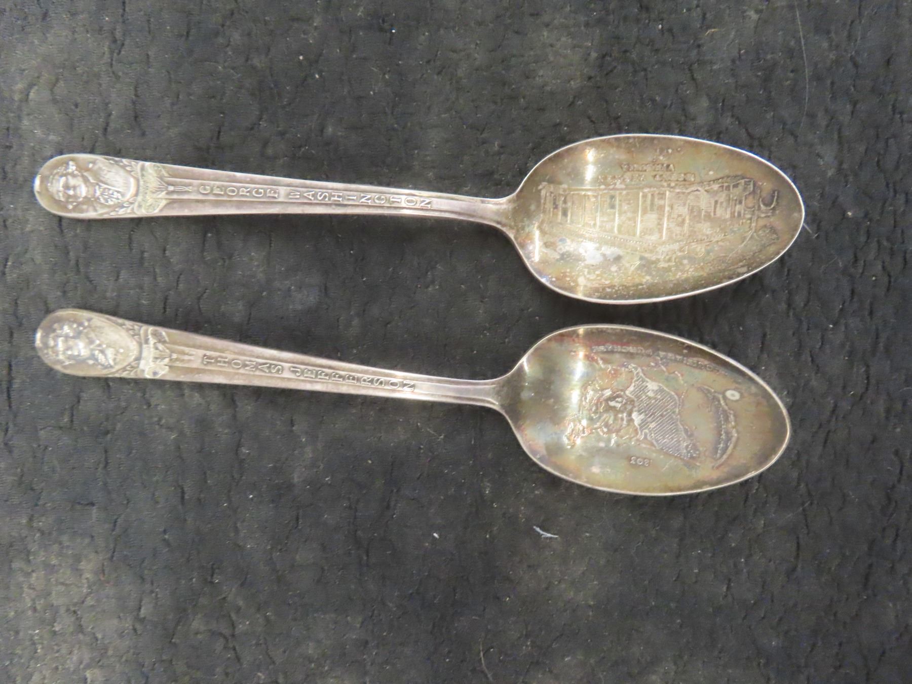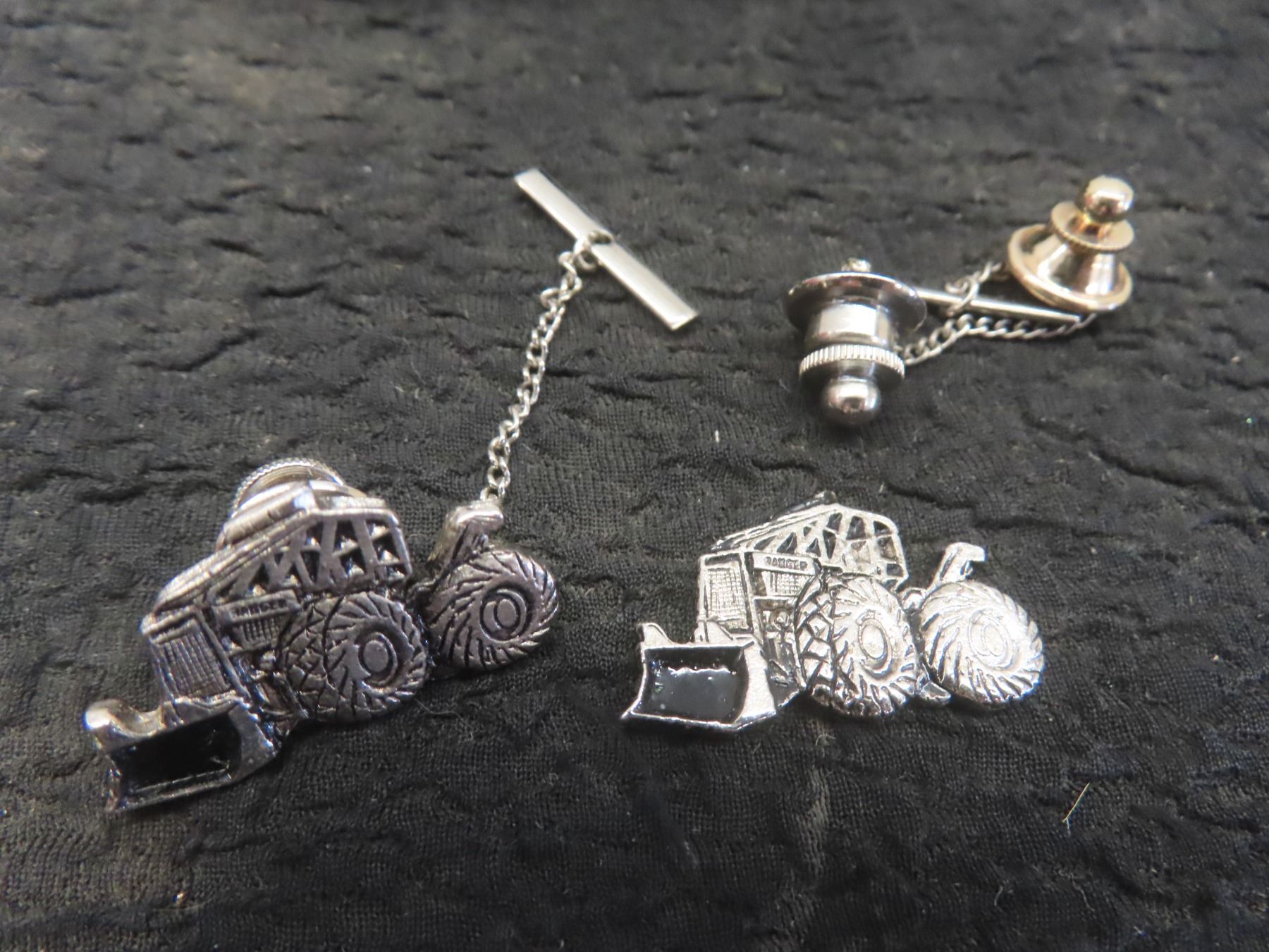 4 Silver Plated Commemorative Spoons JFK, George Washington, Thomas Jefferson, John Adams and 2 Tractor Tie Clips and 7 Bottle Caps