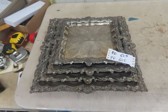 4 Silverplate Trays - Biggest 18" x 18" , Smaller 12"x 12"