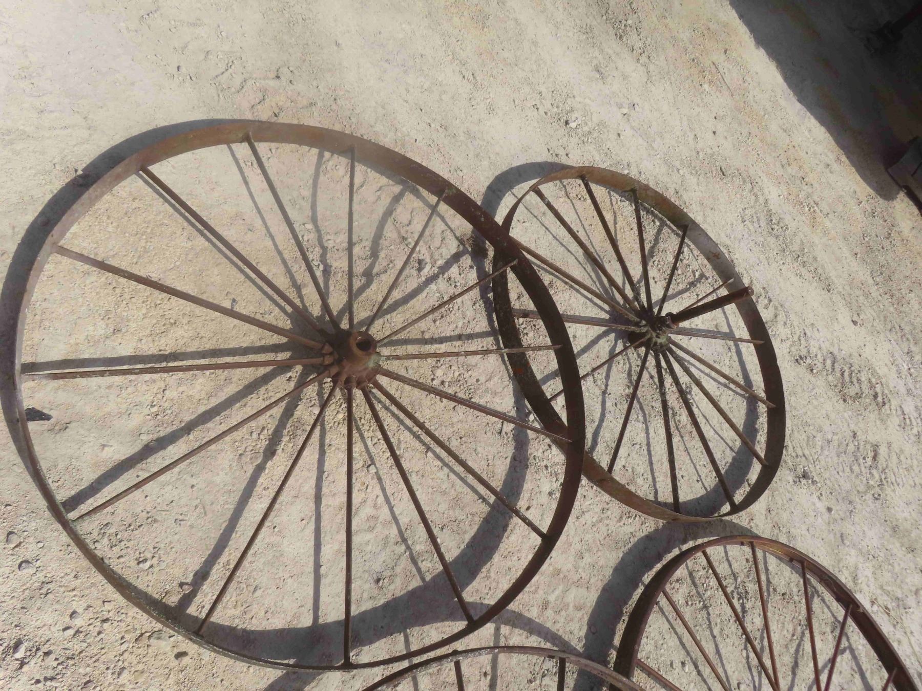 4 Steel Wagon Wheels, 50''-54'' Diameters.