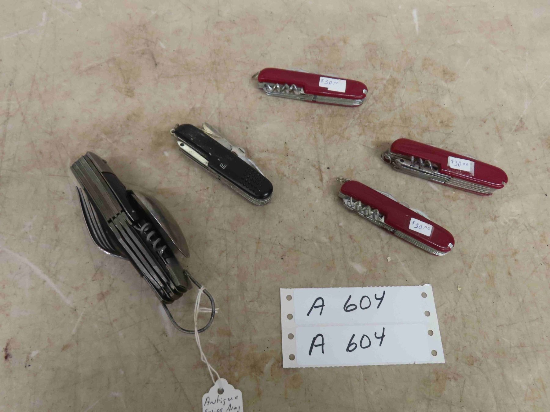 4 Swiss Army Knives , 1 Antique Swiss Army Knife